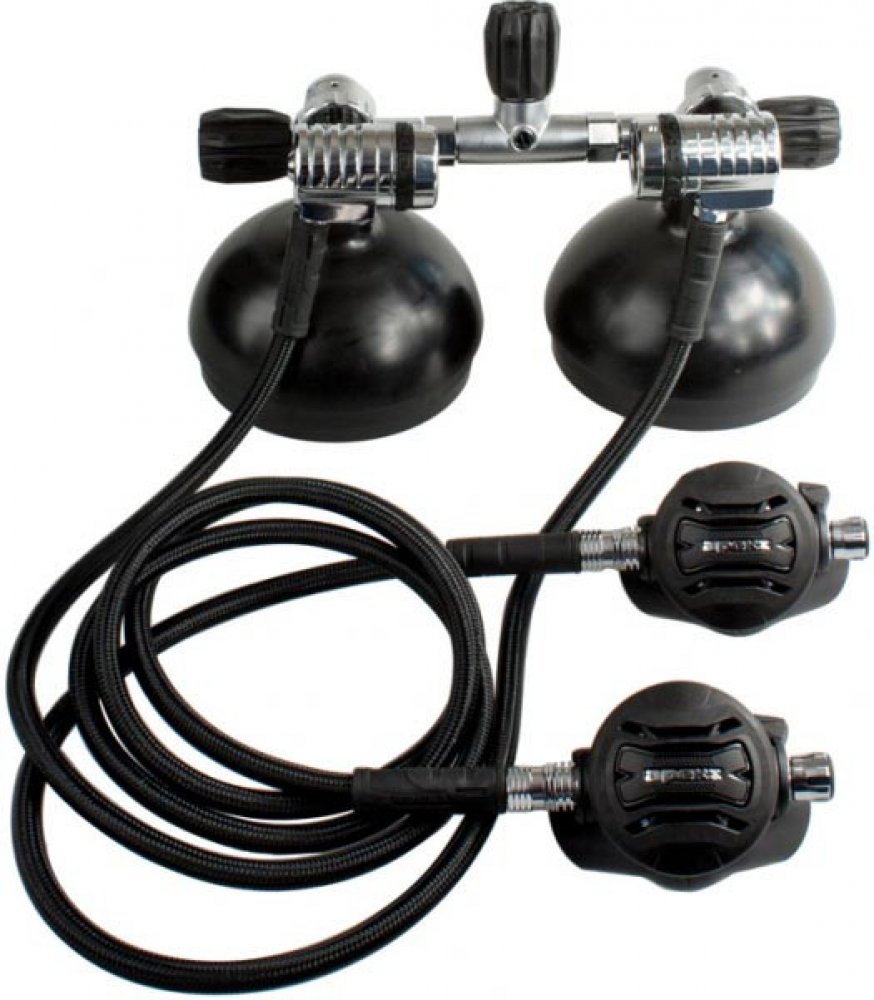 Apeks TEK3 + XTX50 set Gauge – tento set je přímo vyráběný pro potápění s dvojčaty (dá se samozřejmě použít i na dvouventil). Proto se první stupeň vyrábí v levém a pravém provedení. Hodí se do studené vody. U obou druhých stupňů jde rukou, tzn. i pod vodou upravit nádechový odpor dle vaší aktuální potřeby. Součástí je závěs druhého stupně na krk a dvě hadice, jedna o délce 0,75 m a druhá o délce ...
