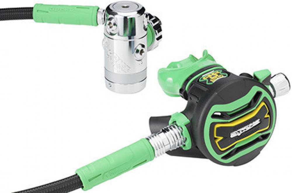 Apeks XTX50/DST4 Nitrox – konstrukčně jednoduchý a spolehlivý 1. stupeň je určený pro potápění s nitroxem nad 40% kyslíku. Má jeden vysokotlaký výstup, 4 středotlaké výstupy. Závit na 1. stupni je M26. Set je doplněný o kyslíkově čistý druhý stupeň XTX50 (jde mu nastavit nádechový odpor) a hadici mezi 1. a 2. stupněm. Set je vhodný do chladných vod.První stupeň Apeks DST4:membránový vyváženýuzavř...
