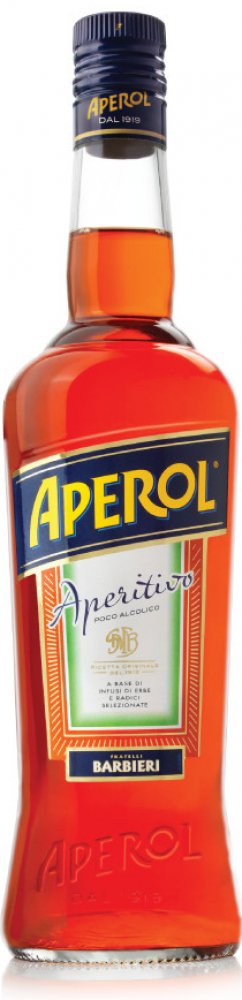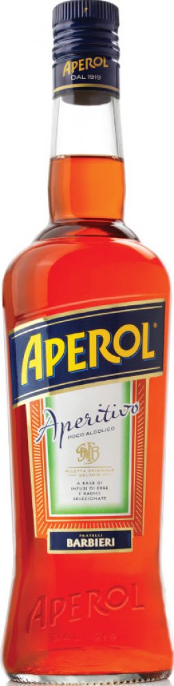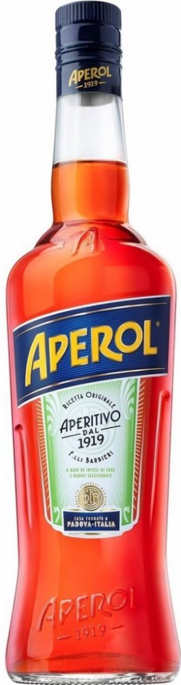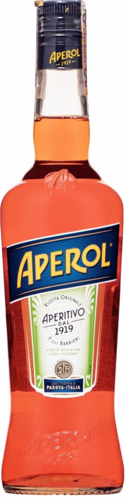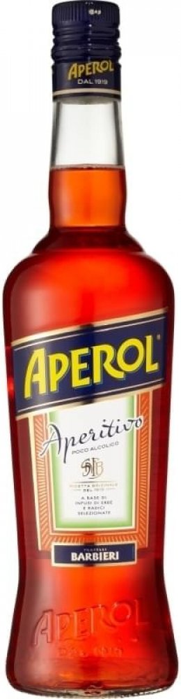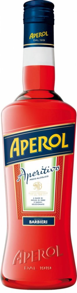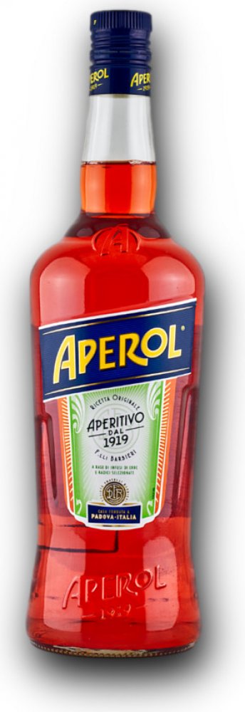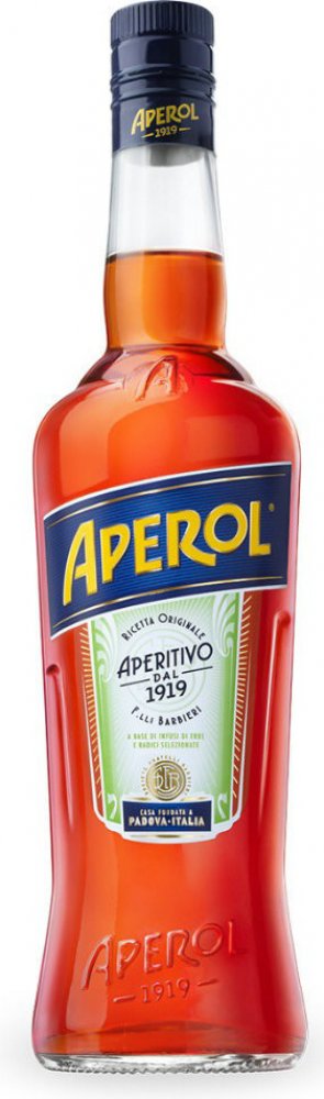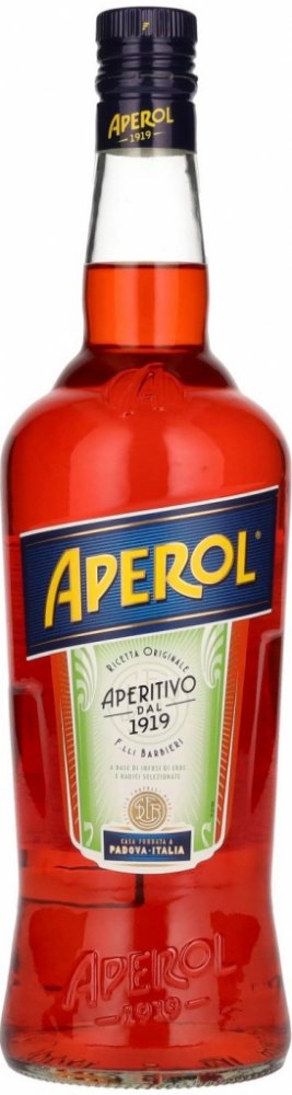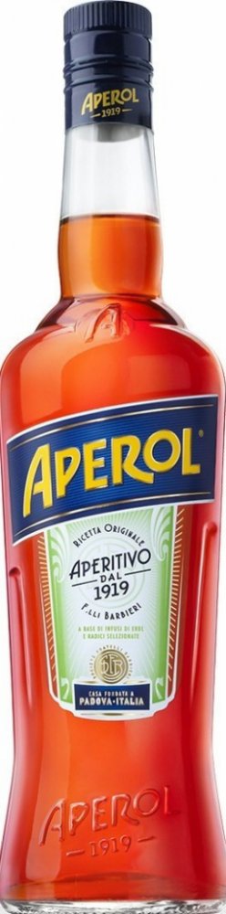 Název výrobku: Aperol Aperitivo Druh výrobku: aperitivní likér Složení: voda, cukr, líh, rostlinné výtažky, aroma (obsahuje chinin), jedlá sůl, barviva: E110, E124 Množství alkoholu: 11 % obj. Země původu: Itálie Objem: 1 l
