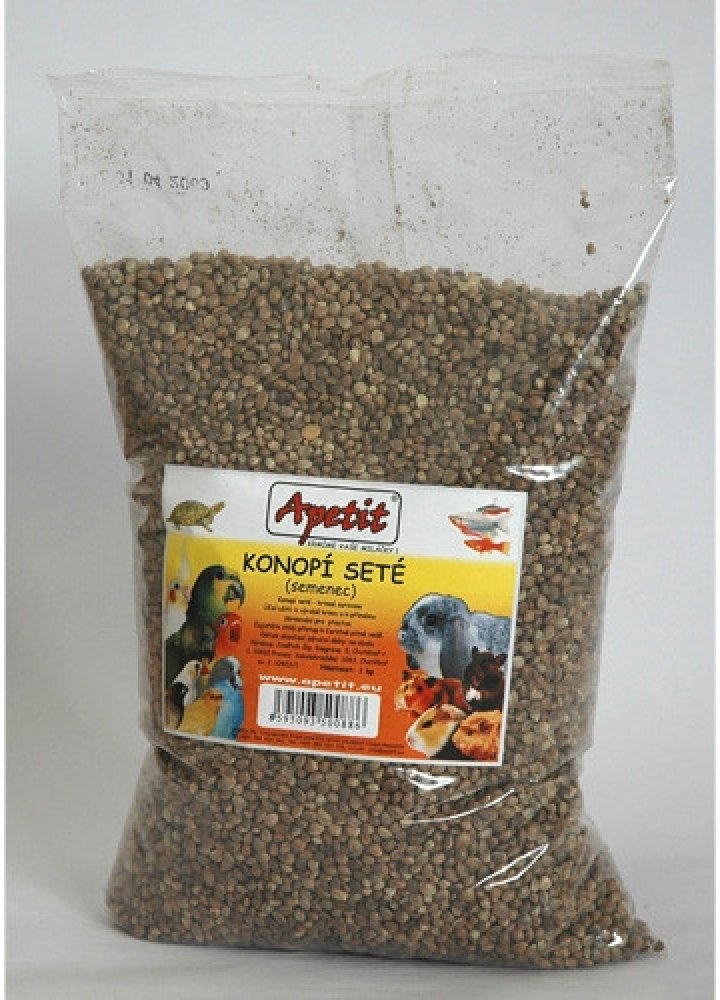 Apetit Konopí - semenec můžete mazlíčkovi podávat jako přídavek do krmiva nebo k přímému zkrmování. Jako doplňkové krmivo je semenec vhodný pro papoušky, hlodavce a ryby. Apetit Konopí - semenec Používáno do krmných směsí Chutný doplněk stravy Pro zpestření jídelníčku vašeho mazlíčka Konopné semínko je bohaté na esenciální nenasycené mastné kyseliny, vitamíny A, B1, B2, niacin, B6, C, D a E, vápník, hořčík, zinek a železo. Zajišťuje tak správné fungování nervové soustavy, zlepšuje stav tkání, léčí kožní nemoci a posiluje imunitní systém. Krmný návod: Určeno k výrobě krmiv nebo přímému zkrmování. Můžete podávat i jak pamlsek. Vždy však zajistěte dostatek pitné vody. Podávejte podle potřeb zvířete.