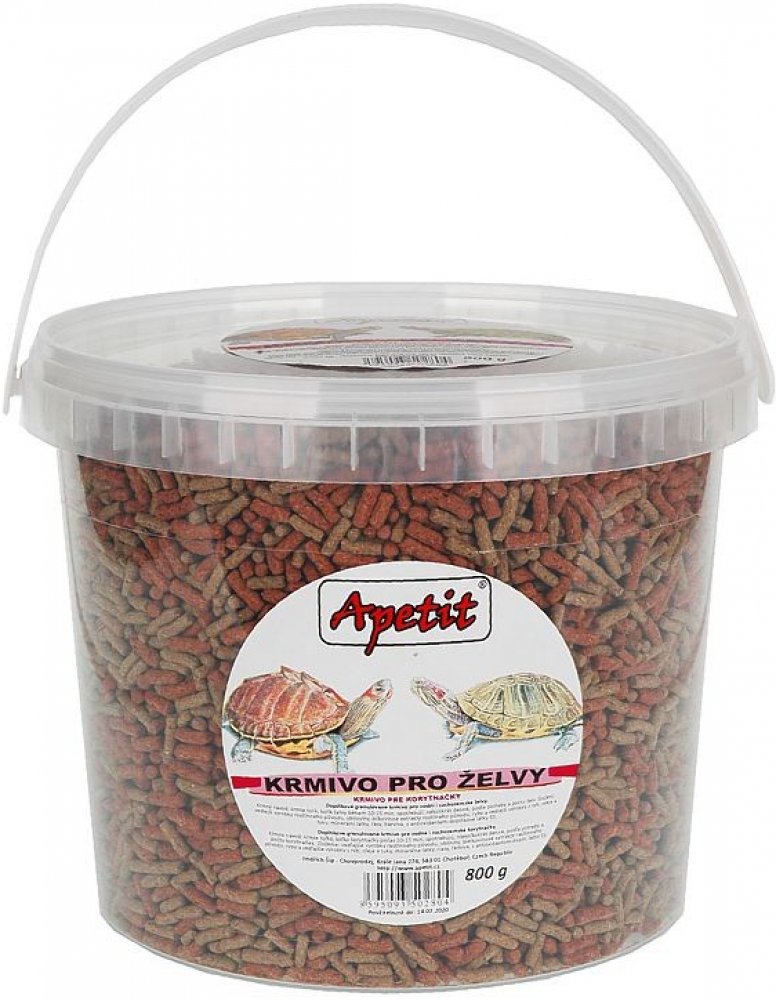 Doplňkové granulované krmivo pro vodní i suchozemské želvy.