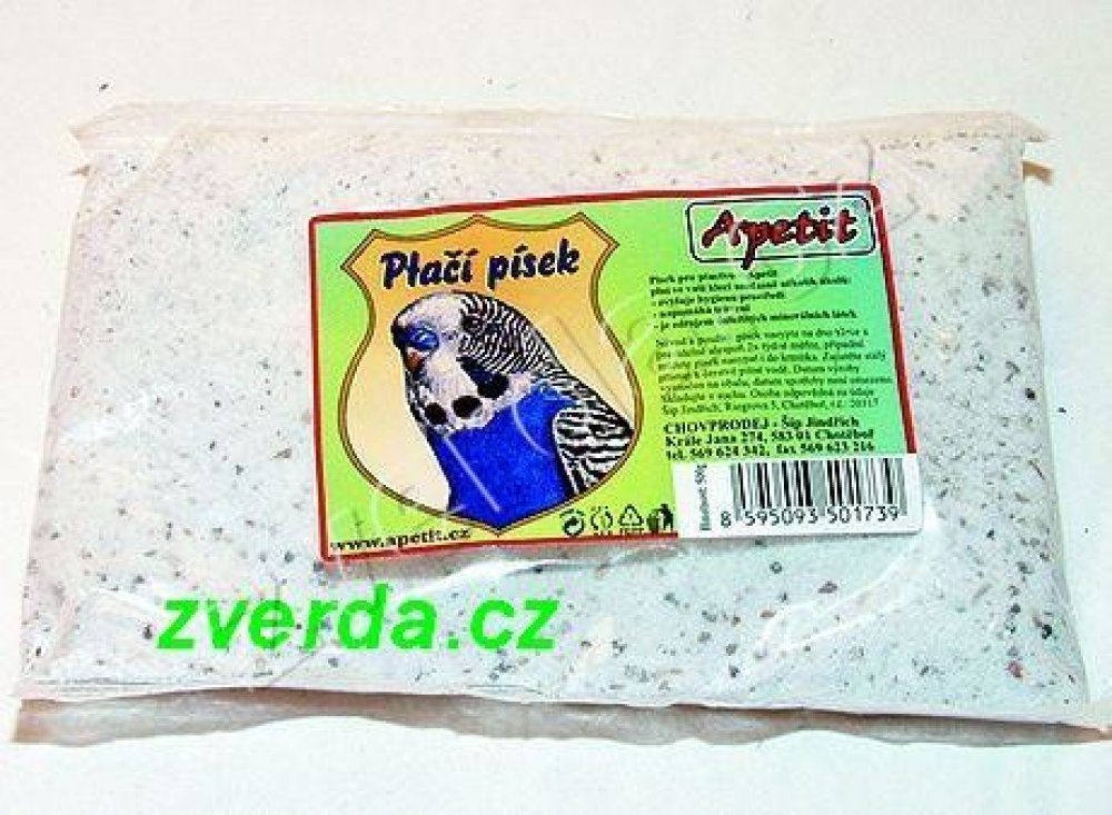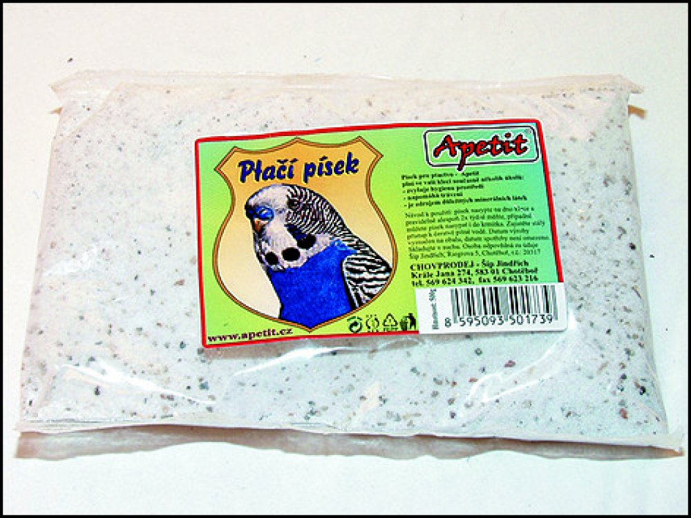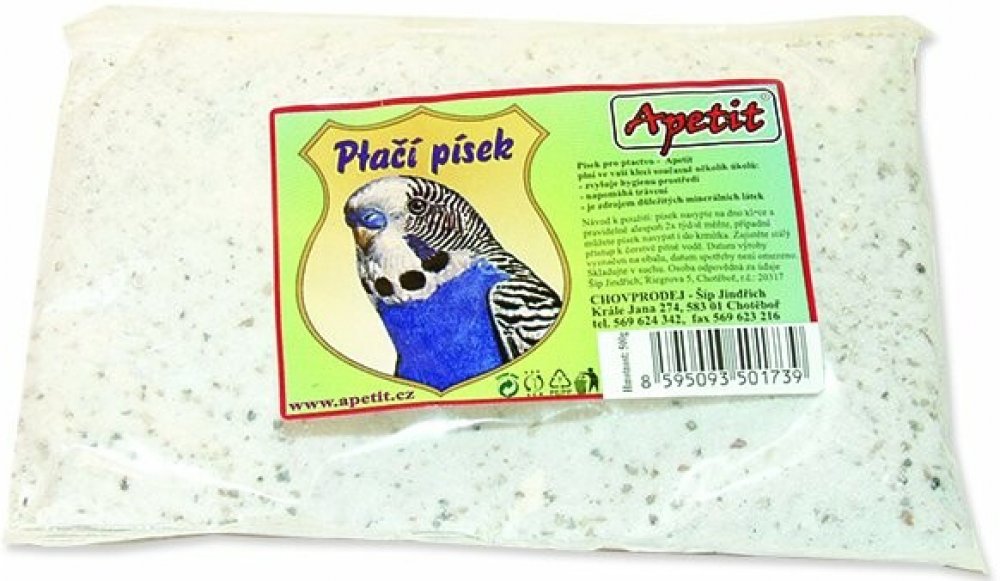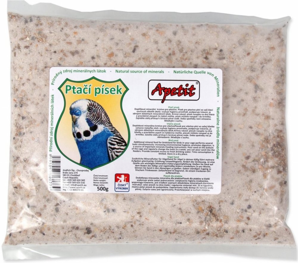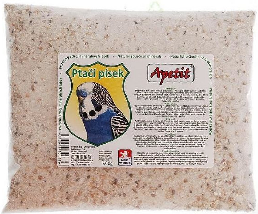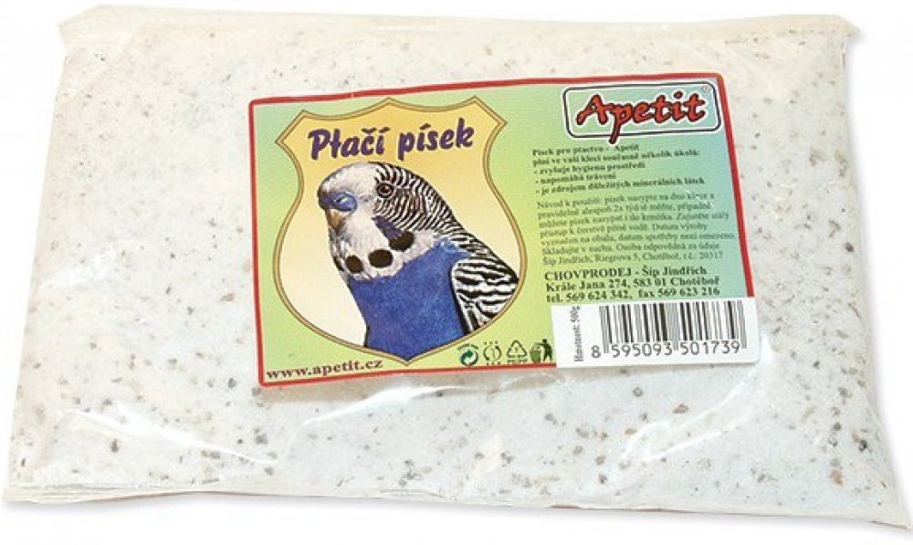Jemný písek pro všechny druhy okrasného ptactva slouží k oblíbenému koupání ptáků i jako doplňkové krmivo k doplnění minerálů. V žádné kleci vašeho ptačího mazlíčka rozhodně nesmí chybět miska s pískem, protože ptáci koupání v písku prostě milují a pomáhá jim pečovat o peří, zároveň písek potřebují ke správné funkci jednoho ze dvou žaludků, který by bez písku nedokázal dobře rozmělnit zrna. Apetit písek je zároveň zdrojem nezbytných minerálních látek, takže slouží i jako doplněk ke krmivu.
