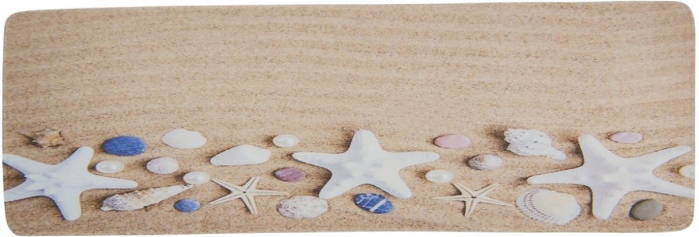 Protiskluzová 3D předložka Písek navozuje pláž s mořskými lasturami a hvězdicemi. Vrchní strana je velmi příjemná na dotyk, je vyrobena z mikrovlákna a zaručuje rychlé schnutí. Spodní strana má protiskluzový povrch a zaručuje neklouzání po hladkých podlahách, lze využít i v koupelně. Podložky lze prát v pračce na 60°C.