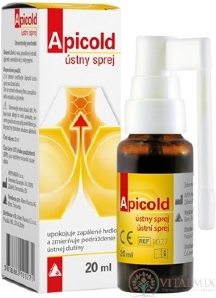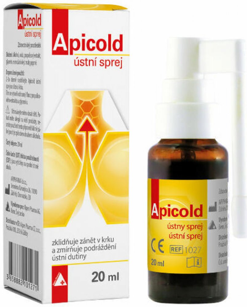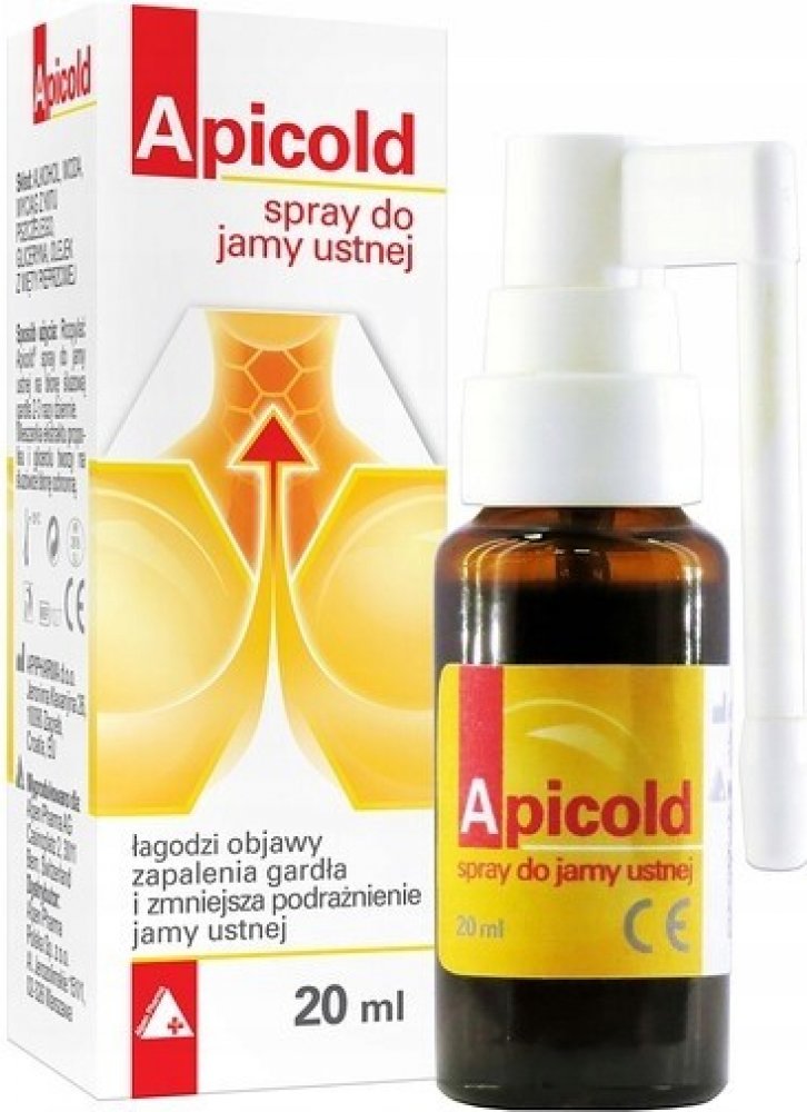 APICOLD ústní sprej je zdravotnický prostředek, který zklidňuje zánět v krku a zmírňuje podráždění ústní dutiny, což mohou být příznaky nachlazení různého původu.