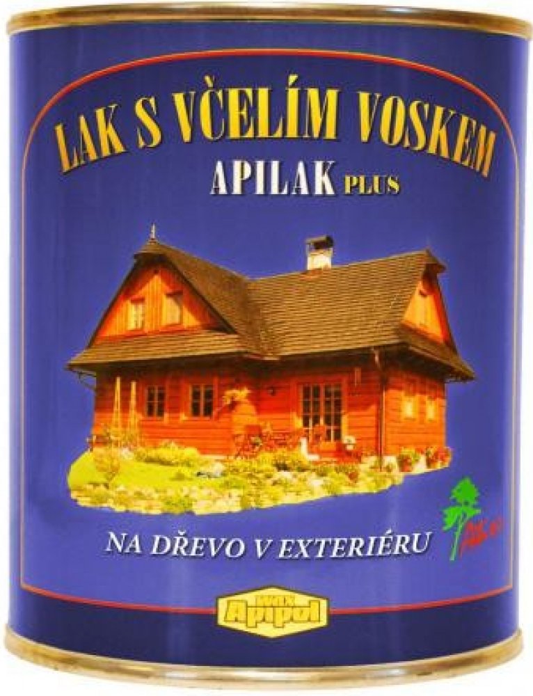 APILAK Plus lak na venkovní dřevo s včelím voskem 0,7L. Bezbarvý hedvábně matový lak vyráběný dle unikátních receptur starých mistrů. Používá se k venkovním i vnitřním nátěrům dřevěných obkladů, dveří, oken, podlah a také konstrukčních prvků krovů. Velmi vhodný pro venkovní povrchovou úpravu dřevěných roubených staveb. Obsahuje včelí vosk, balzamický terpentýn a přírodní oleje rostlinného původu. Zvýrazňuje barvu a strukturu dřeva, s časem povrchově upravené dřevo nádherně patinuje do zlatova. V případě, že požadujeme zabarvení dřeva, provedeme jako podklad tenkovrstvý lazurovací lak v požadovaném odstínů. Jako druhá vrstva se provede nátěr Apilakem Plus. Následující nátěr Apilakem je nutno provést v intervalu 6 měsíců. Oleje a vosky vsakují hluboko do dřeva, udržují dřevo zdravé a elastické a zabraňují vysýchání. Umožňují odpařování vlhkosti a tím zabraňují možnému kroucení dřeva. Apilak Plus je velmi vhodný i pro obnovení starého nátěru provedeného jak tekovrstvou tak silnovrstvou lazurou. Nanáší se štětcem, válečkem nebo stříkáním v jedné tenké vrstvě a v takovém množství, které je povrch schopen absorbovat. Přebytky laku je možno setřít bavlněným hadříkem. Po zaschnutí se vyleští do pololesku. Apilak Plus vyniká vysokou vydatností: malá plechovka 0,7l vystačí na cca 15m2. INR