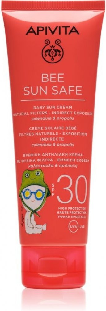 Apivita Bee Sun Safe Baby Sun Cream SPF30, 100 ml, Sluneční kosmetika pro děti pro děti, Dětská kůže je vůči slunečním paprskům mimořádně citlivá a proto je důležité poskytnout jí dostatečně účinnou a spolehlivou ochranu. Opalovací přípravek Apivita Bee Sun Safe Baby Sun Cream SPF30 se o to postará. Díky kombinaci účinných UV filtrů zabrání podráždění, spálení či jinému poškození způsobenému škodl...