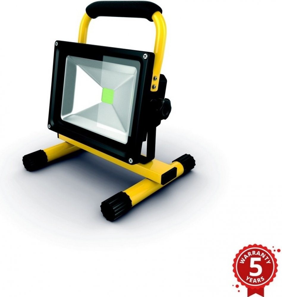 LED reflektor AKU od výrobce APLED využijete pro osvětlování budov, interiérů a fasád. Výhodou tohoto reflektoru je možnost jej využít v místech bez přívodu elektrické energie, kde vydrží produkovat světlo až po dobu pěti hodin. Plného nabití reflektoru dosáhnete po pěti hodinách. V případě potřeby nepřetržitého osvětlení je možné reflektor zapojit k přívodu elektrické energie. Tělo tohoto reflektoru umožňuje snadné postavení a nastavení úhlu svícení. Pomocí madla s měkkou pěnou lze reflektor pohodlně přenášet. Rozměry umožňují snadné uskladnění. V balení kromě samotného reflektoru najdete baterii, nabíječku na 12V a 220V.