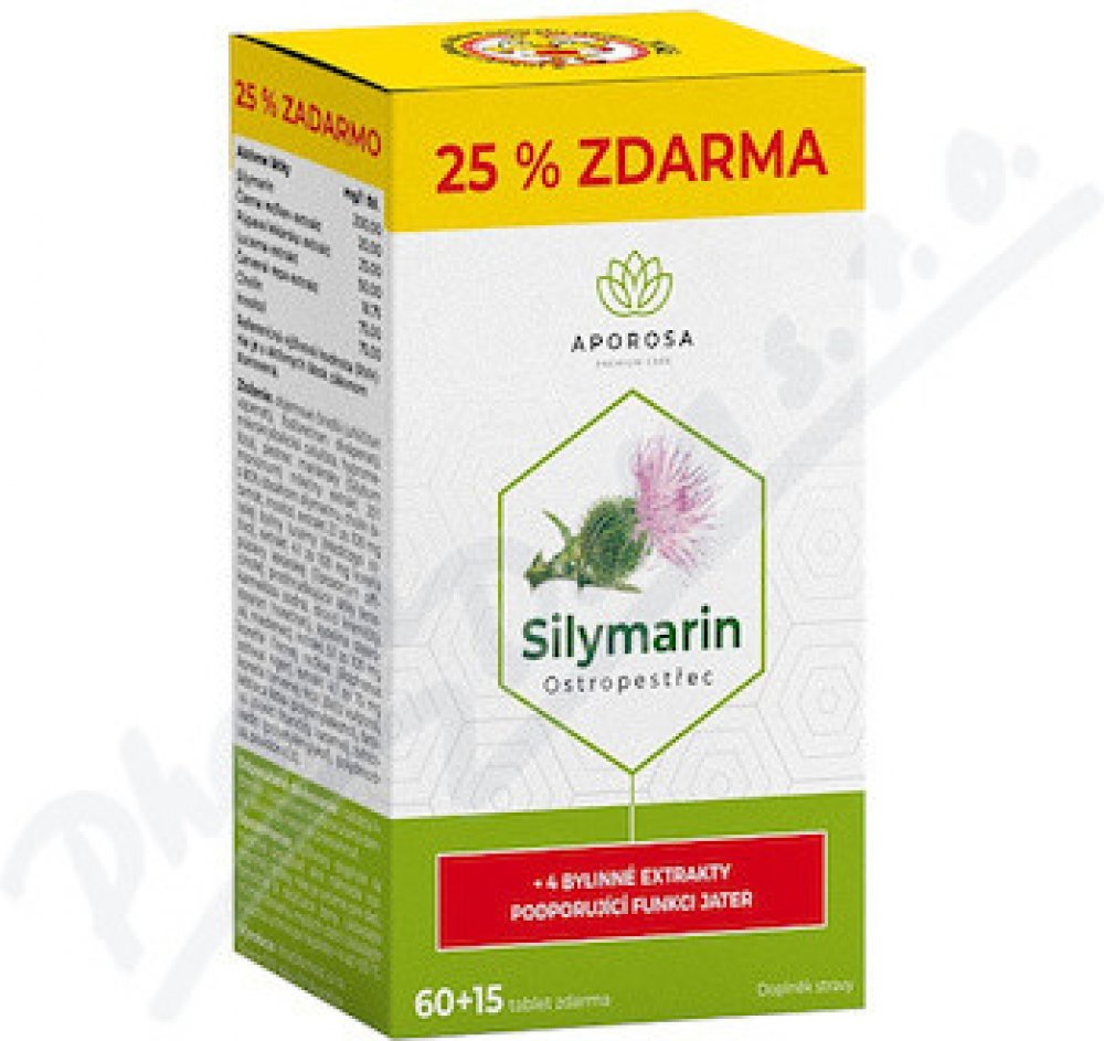 APOROSA Ostropestřec (Silymarin 200 mg) tbl.75 Bylinný extrakt obsahující silymarin, který je nejoblíbenější přírodní látkou v souvislosti s játry. Přispívá k normálnímu trávení, funkci jater a k jejich pročištění. Udržuje normální hladinu cukru v krvi, podporuje přirozenou obranyschopnost.