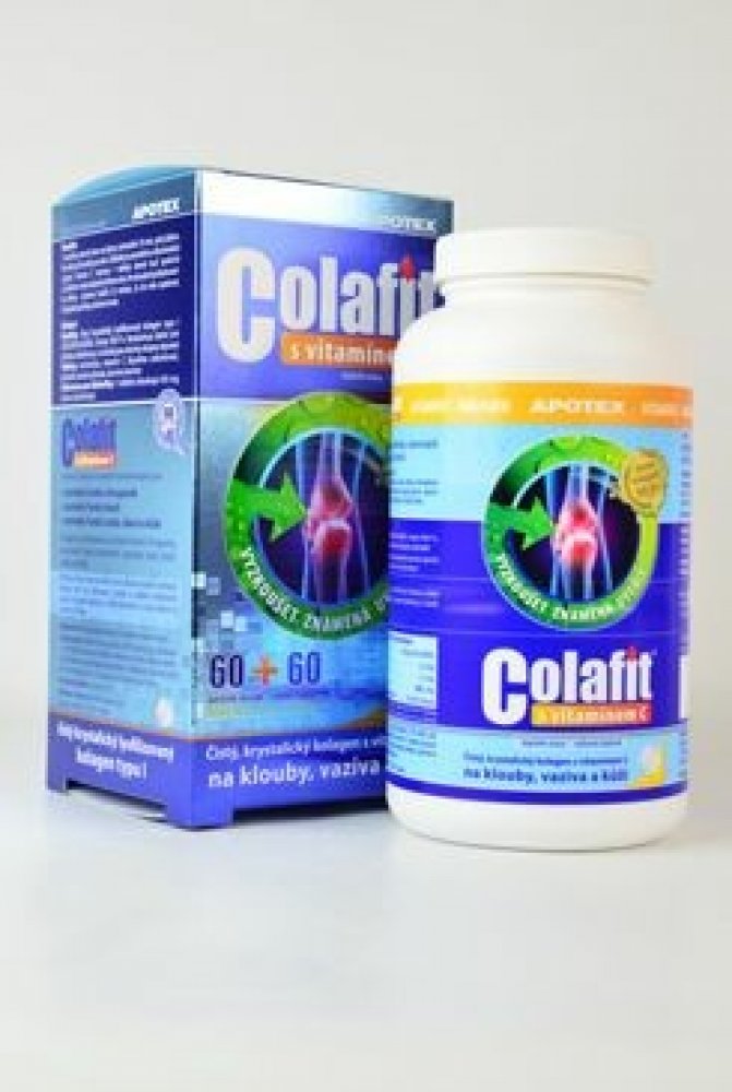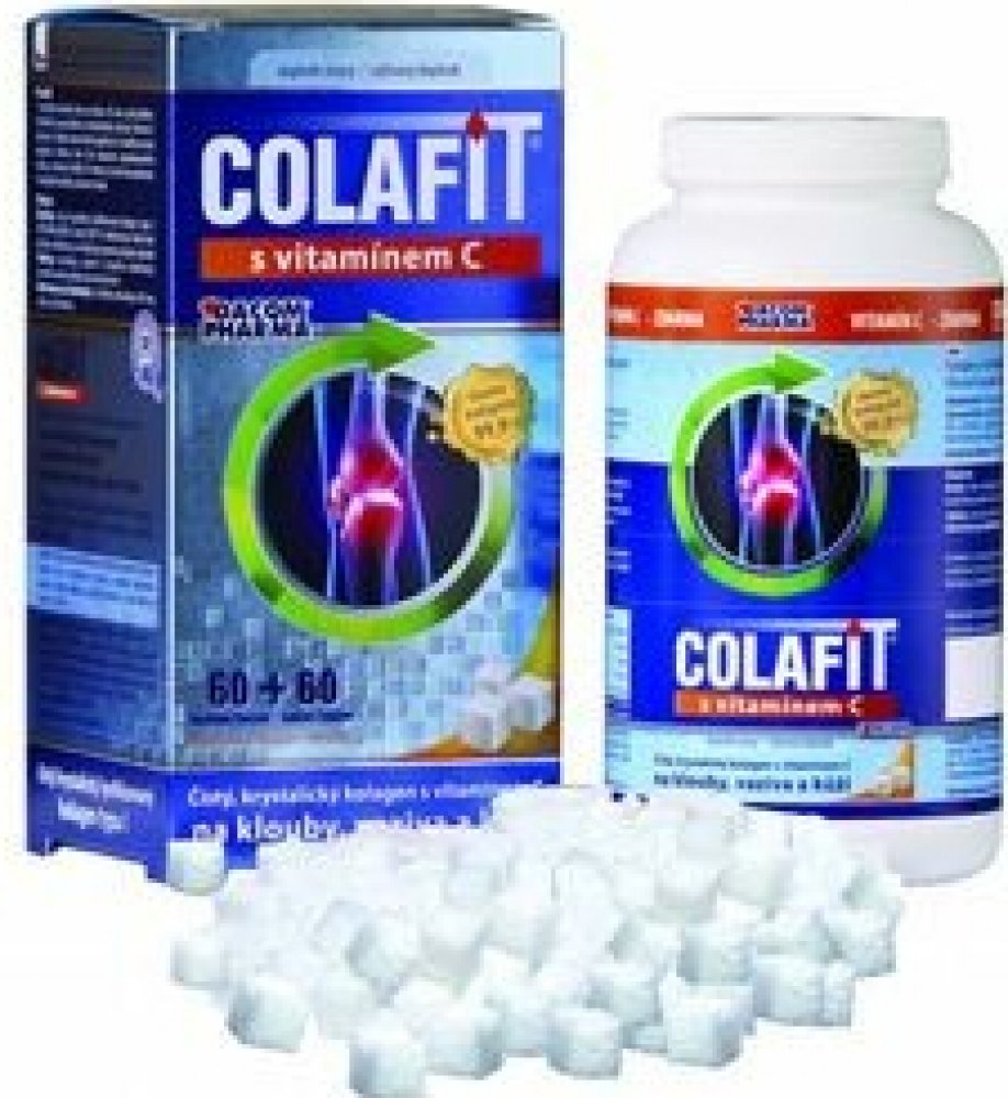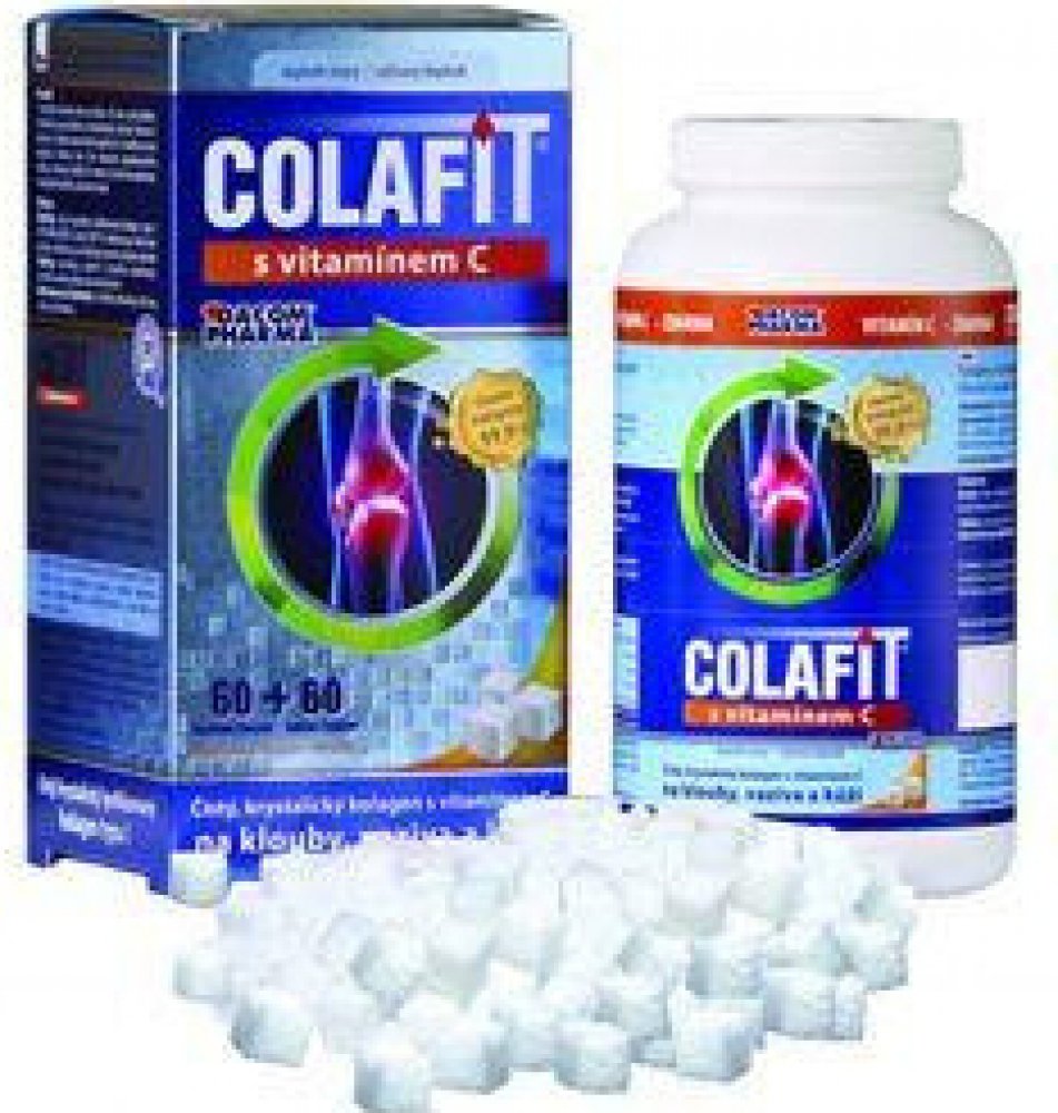 Prémiové balení, které obsahuje kombinaci 60 kostiček Colafitu a 60 tablet vitaminu C, který napomáhá k normální tvorbě kolagenu pro normální funkci kostí, chrupavky ale i pokožky, zubů a dásní. Balení je tvořeno 2 lahvičkami. Po odstranění odtrhovacího proužku je možné od sebe lahvičky oddělit. Ve spodní části jsou umístěné kostičky Colafitu, v horní tablety vitaminu C.Vhodná kombinace aktivních látek: kostičky čistého krystalického lyofilizovaného kolagenu typu I a chutné tablety vitaminu C s jahodovou příchutíStačí užívat 1 kostičku a 1 tabletu denněBalení na 2 měsíce užívání Balení obsahuje 120 kostek. Dávkování a způsob užitíDoporučuje se užívat 1x denně jednu kostičku (nejlépe ráno 10 minut před jídlem) a 1x denně jednu tabletu vitaminu C. SloženíJedna kostička Colafit obsahuje čistý bovinní lyofilizovaný kolagen typu I 8 mg.Jedna tableta vitaminu C obsahuje 40 mg (50 % RHP*) a pomocné látky sladidlo: sacharóza, přírodní jahodové aroma a barvivo karmín.Informace pro diabetiky: 1 tableta obsahuje 580 mg cukru (sacharóza). UpozorněníNení určeno pro děti do 3 let.
