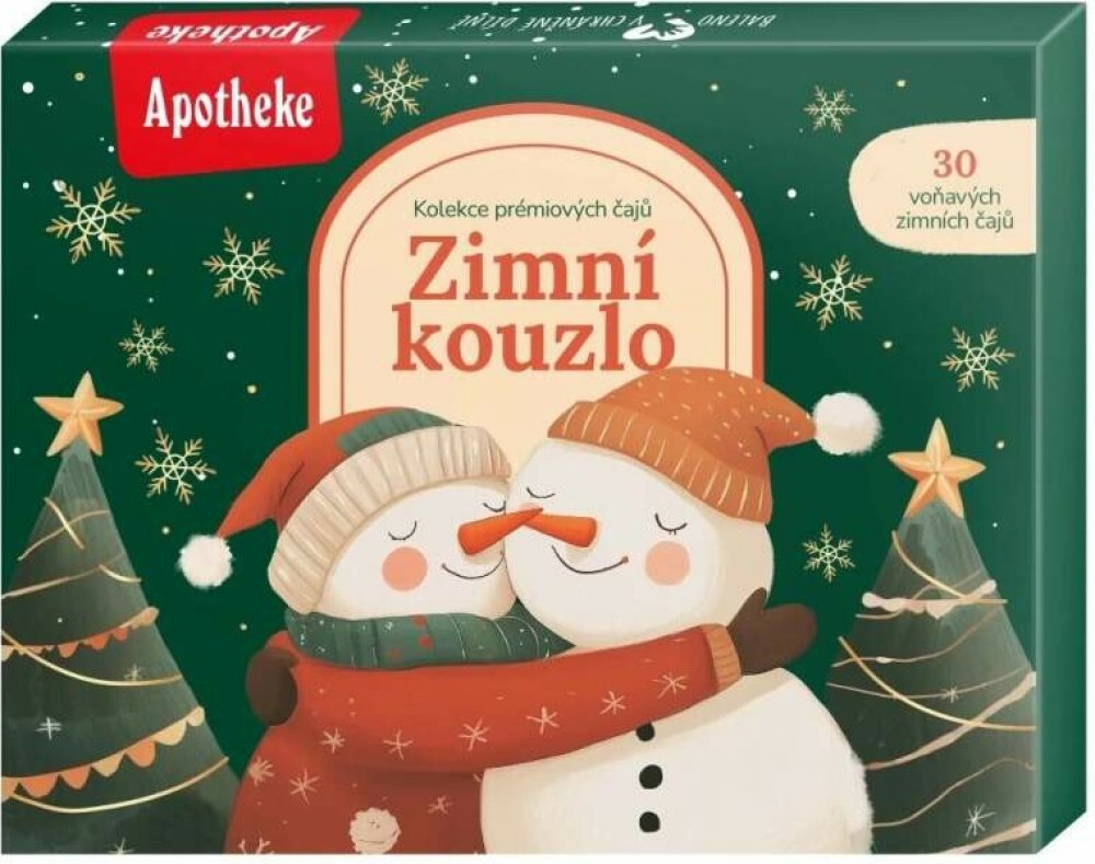 Dárková kazeta s vybranými prémiovými čaji Apotheke, sestavená speciálně pro zimní období. Vykouzlete si příjemnou sváteční atmosféru se "Svátečním punčem", prožijte "Vánoční kouzlo" nebo se prostě jen příjemně zahřejte šálkem lahodného čaje. Kolekce vybraných prémiových čajů jako stvořená pro zahřátí během zimních dnů - hodí se třeba jako drobný dárek. Balení obsahuje 6 druhů čaje, od každého po 5 nálevových sáčcích. Zařazení: Směs ovocných a bylinných čajů aromatizovaných, porcovaných v nálevových sáčcích. Složení: HORKÁ ŠVESTKA SE SKOŘICÍ: Ibišek květ, jablko plod, ostružina list, lékořice kořen, aroma, šípek plod, skořice kůra 5 %, čekanka kořen, černý bez plod, aronie plod, švestková šťáva granulát 1%. POMERANČ A ZÁZVOR: Zázvor kořen (30%), šípek plod, jablko plod, ostružina list, přírodní pomerančové aroma, kyselina citronová, lékořice kořen, pomerančová kůra (3%), skořice kůra. SVÁTEČNÍ PUNČ: Rakytník plod 20%, ibišek květ, šípek plod, ostružina list, přírodní aroma, zázvor kořen, skořice kůra 6%, lékořice kořen, pomerančová kůra 5%, čekanka kořen, hřebíček květ, kardamom. VÁNOČNÍ KOUZLO: Ibišek květ, šípek plod 17%, rakytník plod 15%, skořice kůra 13%, přírodní aroma, zázvor kořen, ostružina list, lékořice kořen, čekanka kořen. ZÁZVOR A MED: Zázvor kořen (30%), šípek plod, jablko plod, přírodní aroma, ostružina list, lékořice kořen, kyselina citronová, skořice kůra, aroma, med (0,5%). ZIMNÍ ČAJ S KOŘENÍM: Ibišek květ, skořice kůra (15 %), ostružina list, jablko plod (11 %), zázvor kořen, aroma, lékořice kořen, čekanka kořen, pomerančová kůra (3 %), přírodní pomerančové aroma, šípek plod, citronová kůra (2 %), hřebíček květ, kyselina citronová, šťáva z rebarbory koncentrát.. Příprava: 1 nálevový sáček zalijte 250 ml vroucí vody a nechte 3-5 min vyluhovat. Doporučené dávkování: 1-3 šálky denně. Skladování: Skladujte v suchu při teplotě do 25°C. Hmotnost netto: 60 g Výrobce: MEDIATE, s.r.o., Dolní Libchavy 325, 561 16 Libchavy, ČR