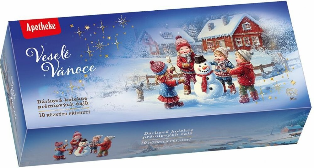 Dárková kazeta s vybranými prémiovými čaji Apotheke, sestavená speciálně pro zimní období. Vykouzlete si příjemnou sváteční atmosféru se Svátečním punčem, prožijte Vánoční kouzlo nebo se prostě jen příjemně zahřejte šálkem lahodného ovocného čaje. Dárková kolekce vybraných prémiových ovocno-bylinných čajů obsahuje 10 druhů čajů po 9 kusech, celkem 90 nálevových sáčků.