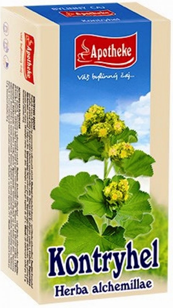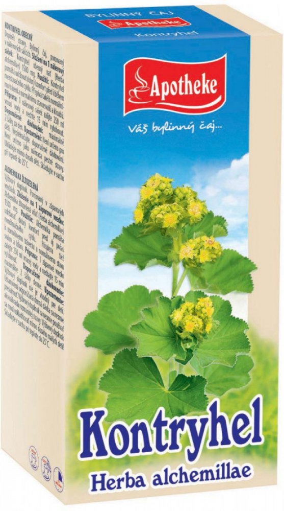 Doplněk stravy. Bylinný čaj, porcovaný v nálevových sáčcích. Složení (v 1 nálevovém sáčku): Kontryhel obecný nať (Herba alchemillae) 1500 mg.