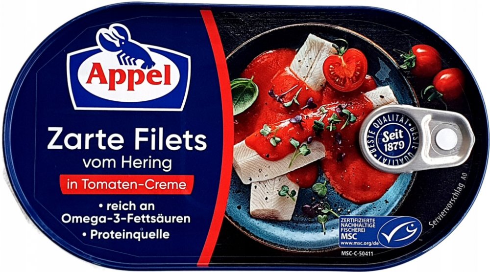 Vynikající a kvalitní Appel sleďové filety v rajčatové omáčce. Máte hlad a potřebujete rychlou svačinu? Ochutnejte Appel Filety ze sledě v rajčatové omáčce 200g. Z této rybí konzervy se nechá připravit výtečná rybičková pomazánka.