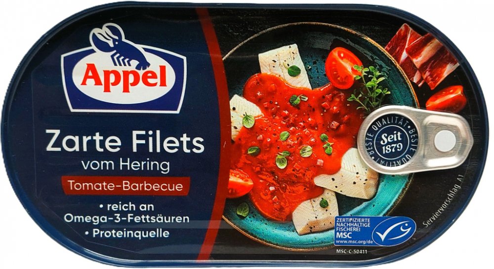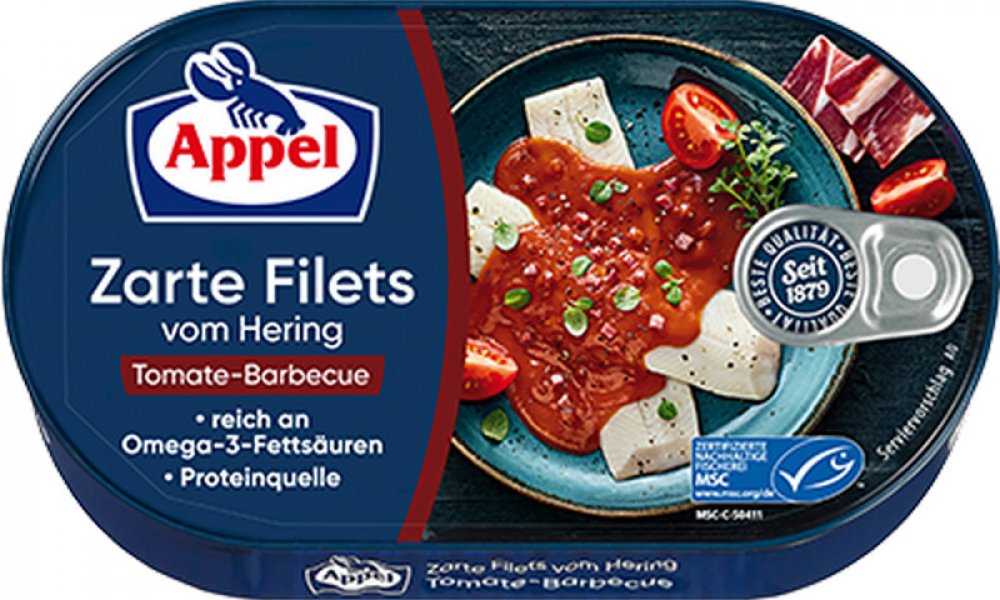 Jemné sleďové filety v barbecue rajčatové omáčce jsou skvělou a zdravou svačinkou. Již více než 135 let je společnost APPEL FEINKOST prvotřídním výrobcem kvalitních rybích výrobků.