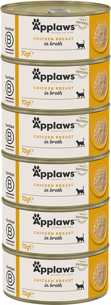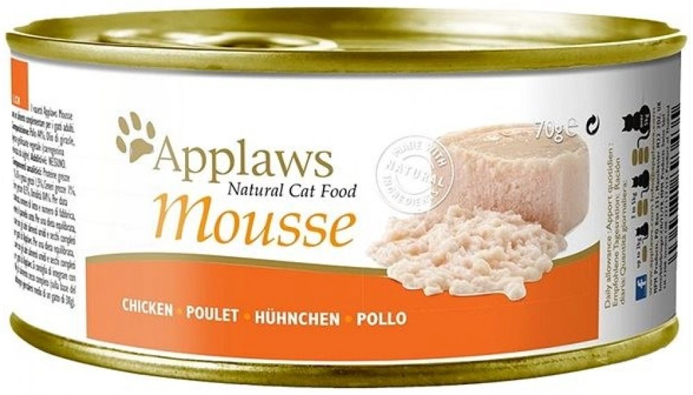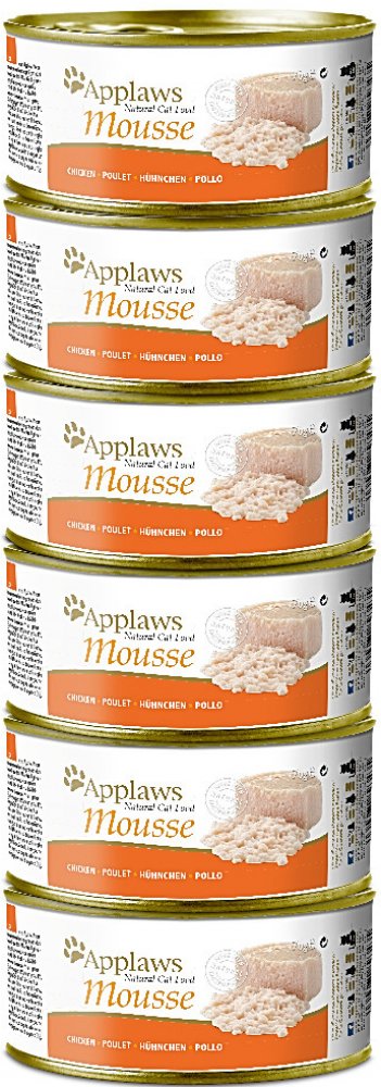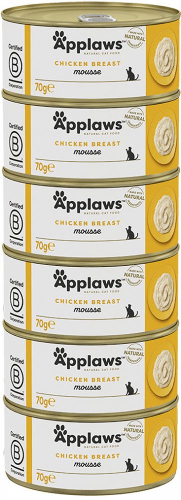 Nový vzhled, stejná kvalita! Zvýhodněné balení 6x70g. Applaws Mousse Kuřecí prsa nabízí jemně našlehané maso pro ty nejmlsnější jazýčky. Doplňkové krmivo pro kočky čistě z přírodních surovin. Až 44% masa v jedné konzervě. Applaws vyniká svou kvalitou a složením. Neobsahuje žádná dochucovadla, konzervační látky, barviva ani uměle přidané vitamíny. To nejlepší, co můžete dát své kočce!