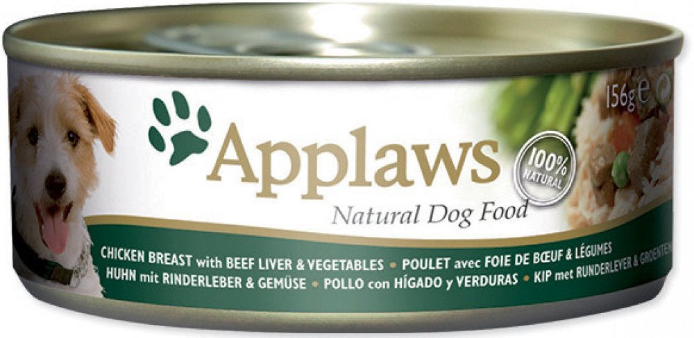 Applaws konzerva Dog 156g KUŘECÍ PRSA, HOVĚZÍ JÁTRA a ZELENINA: