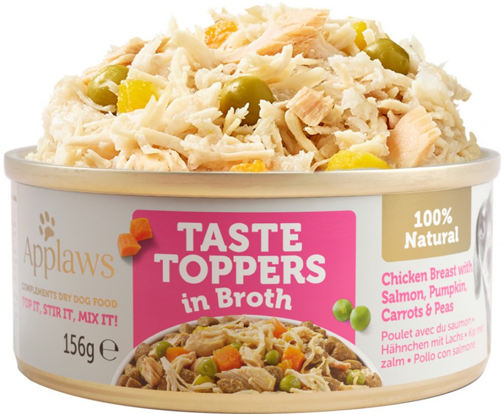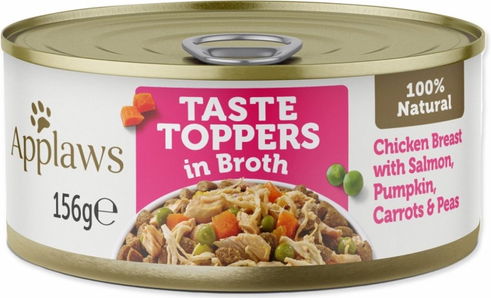Applaws konzerva Dog Taste Toppers ve vývaru Kuře s lososem: