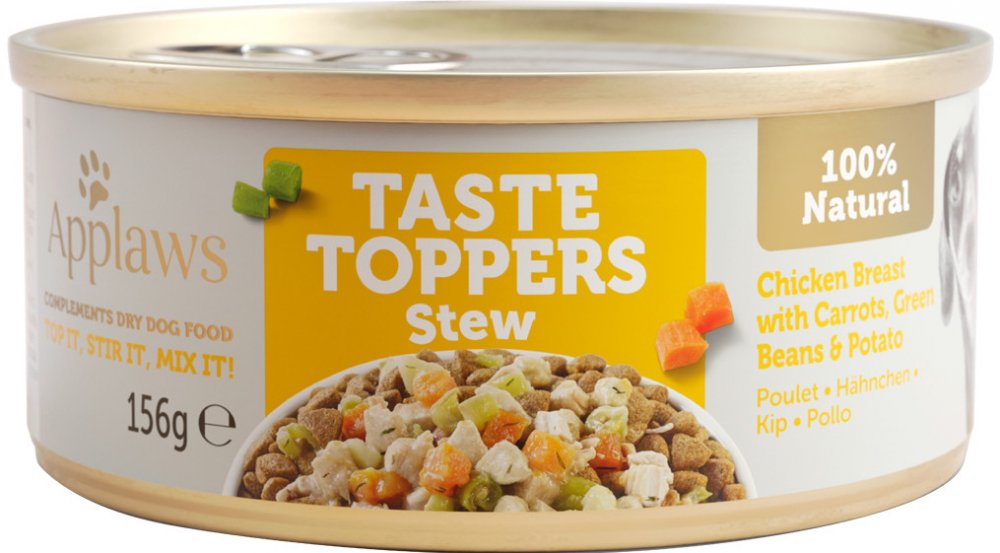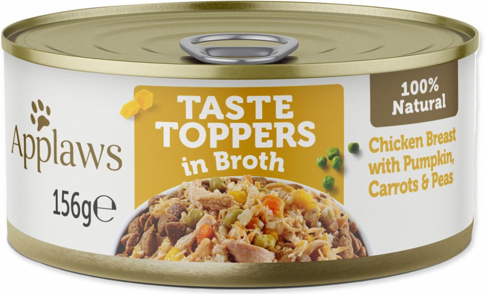 Inovovaná kolekce konzerv Applaws rozšířená o kapsičky a vývarové sáčky na jedinečnou kolekci Taste Toppers je ideální pro zchutnění, zatraktivnění a obměnu chuti běžného granulovaného krmiva. Díky Taste Toppers můžete svému pejskovi podávat měsíce stejné granule (vybírejte jen kvalitní) a každý den je zpestřit jinou chutí z konzerv, kapsiček či vývarových sáčků.