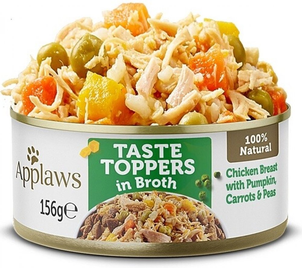 Applaws Taste Toppers Kuřecí prsa se zeleninou ve vývaru už znáte. Nový obal, stejná špičková kvalita. Applaws konzerva Dog Kuřecí prsa se zeleninou je plná kousků masa z kuřecích prsou a lahůdkové zeleniny v chutném kuřecím vývaru. Doplňkové krmivo pro dospělé psy pouze z přírodních surovin. Konzervy Applaws pro psy obsahují pouze čisté maso v celých kouscích! Žádné náhražky a imitace masa.