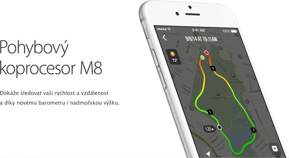 Určitě Vás potěší, že energetická náročnostklesla podle výrobce o 50% ve srovnání s procesorem A7. Telefon by měl vydržet v nečinnosti až 10 dní. Hudbu lze přehrávat až 50 hodin, HD video až 10 hodin, surfovat po internetu přes Wi-Fi až 11 hodin a přes LTE až 10 hodin. Nechybí ani pohybový koprocesor M8.