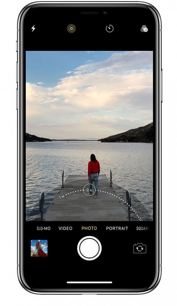 Fotoaparát iPhonu X s širokoúhlým objektivem a teleobjektivem umí optický zoom. V kombinaci s digitálním zoomem dosahuje až 10× přiblížení fotek a 6× přiblížení videa.