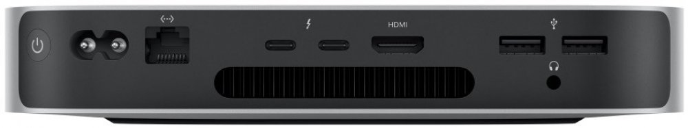Mac mini se dvěma nebo čtyřmi porty Thunderbolt 4, dvěma porty USB‑A, HDMI, Wi‑Fi 6E a gigabitovým ethernetem připojíš prakticky k čemukoliv. A jestli potřebuješ ještě rychlejší připojení k síti, můžeš si Mac mini objednat s 10GB ethernetem, který má až desetinásobnou propustnost.