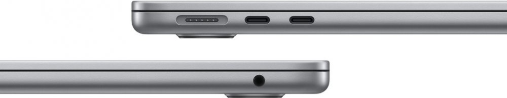 Napájecí konektor MagSafe drží pomocí magnetů a zaručuje naprosto bezproblémové připojování a odpojování kabelu. V případě, že o kabel omylem zavadíte, rychle se uvolní a notebook tak nespadne na zem. Dva porty Thunderbolt přijdou vhod na vysokorychlostní připojení a napájení doplňků, navíc umožňují připojení monitoru s rozlišením až 6K. Nově je možné po zavření víka MacBooku Air používat druhý externí displej s rozlišením až 5K při 60 Hz. Sluchátkový konektor podporuje i vysokoimpedanční sluchátka.