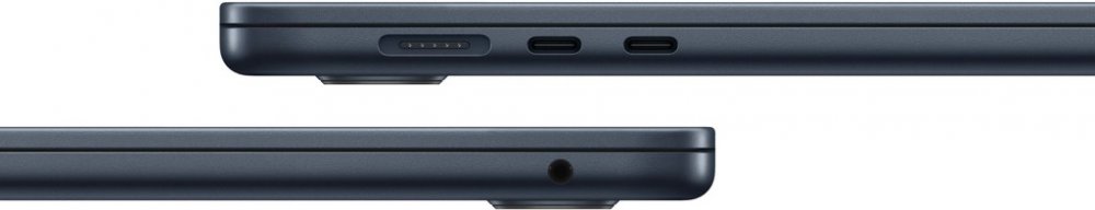 Napájecí konektor MagSafe drží pomocí magnetů a zaručuje naprosto bezproblémové připojování a odpojování kabelu. V případě, že o kabel omylem zavadíte, rychle se uvolní a notebook tak nespadne na zem. Dva porty Thunderbolt přijdou vhod na vysokorychlostní připojení a napájení doplňků, navíc umožňují připojení monitoru s rozlišením až 6K. Nově je možné po zavření víka MacBooku Air používat druhý externí displej s rozlišením až 5K při 60 Hz. Sluchátkový konektor podporuje i vysokoimpedanční sluchátka.