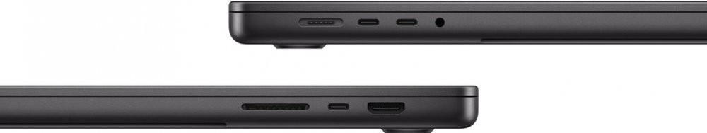 • PŘIPOJÍŠ, CO POTŘEBUJEŠ – 16palcový MacBook Pro má tři porty Thunderbolt 5, nabíjecí port MagSafe 3, slot na kartu SDXC, port HDMI a sluchátkový konektor. V konfiguraci s čipem M4 Pro k němu připojíš až dva externí monitory, s M4 Max dokonce až čtyři.