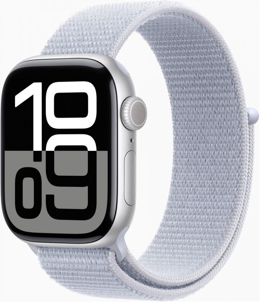 Apple Watch Series 10 46mm Cellular stříbrný hliník s oblačně modrým provlékacím řemínkem MWY23QC/A