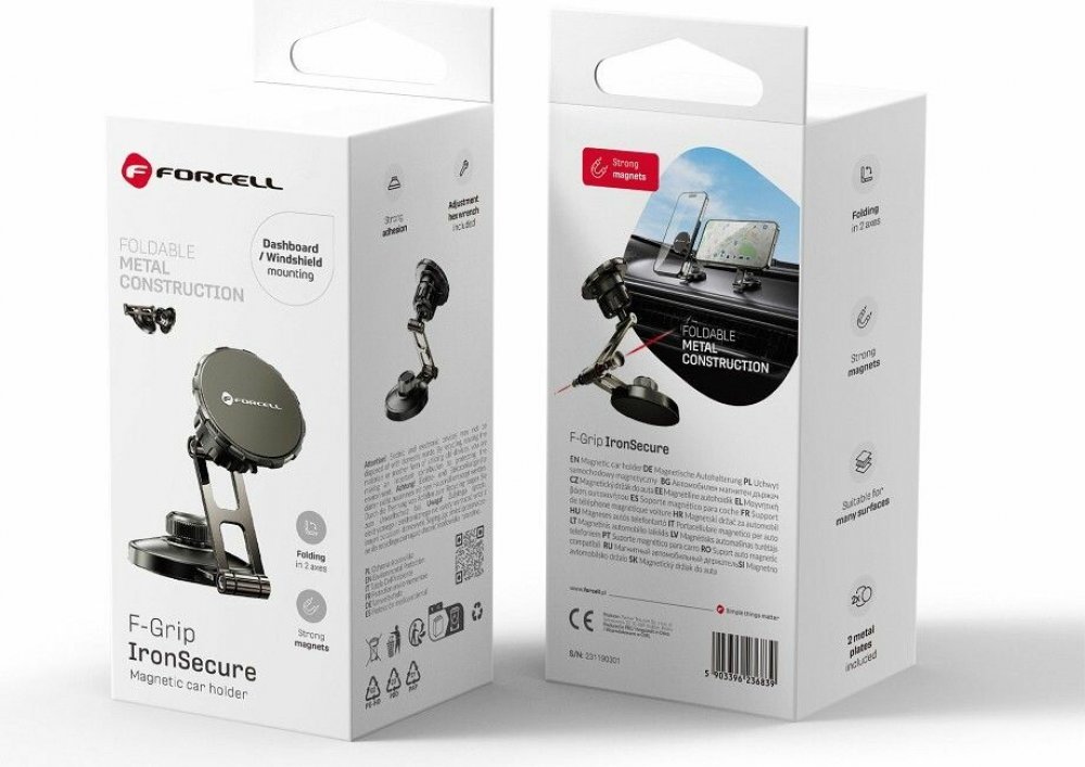 Forcell F-Grip Ironsecure Držák telefonu do auta na čelní sklo/středovou konzolu kompatibilní s Magsafe černý