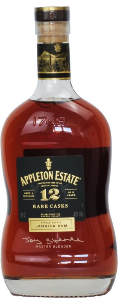 Stařený melasový rum, stáří 12 let. Appleton Estate 12yo Rare Casks pochází z nejstarší nepřetržitě fungující palírny na Jamaice. Blend minimálně 12-letých rumů z vzácných sudů po bourbonu je produktem master blenderky Joy Spence, první ženy na světě, která získala titul master blenderky.