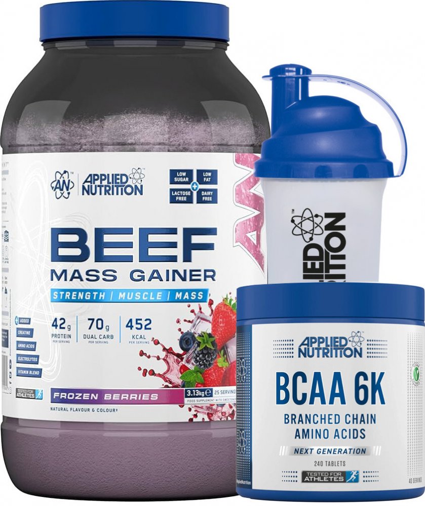 Beef Mass Gainer je prémiový hovězí gainer pro všechny, kteří chtějí rychle přibrat kvalitní svalovou hmotu, zvýšit sílu a urychlit regeneraci . Každá porce dodá 42 g hovězího izolátu + vysoce kvalitní sacharidy pro růst výkonu a objemu.