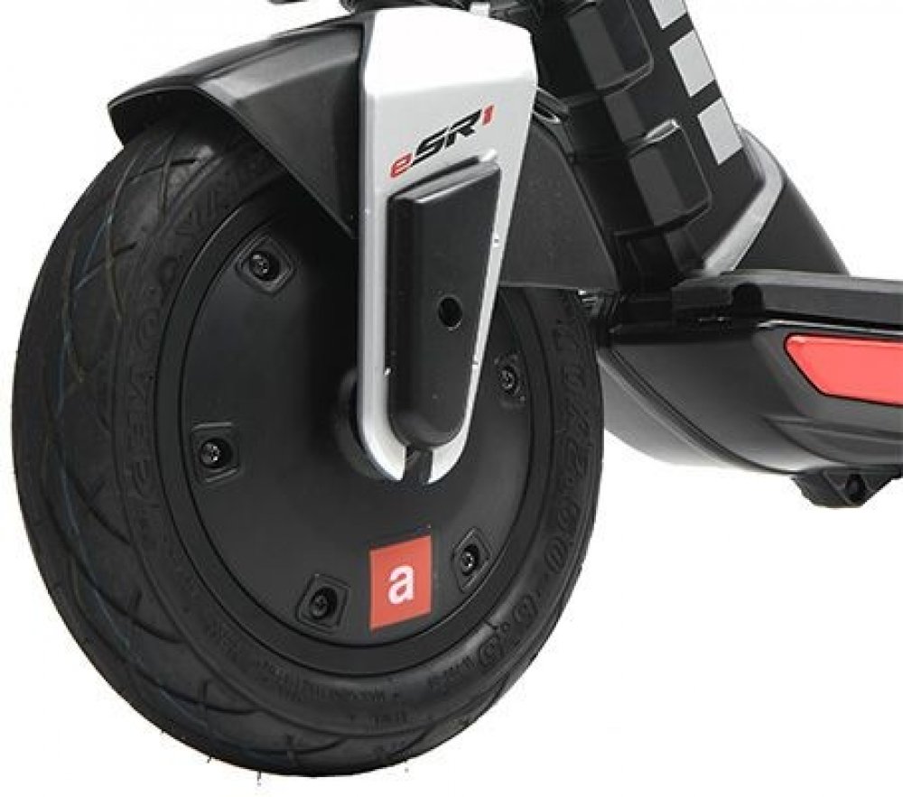 Bezdušová 10” kola přináší nejvyšší jízdní komfort v podobě pohlcování vibrací a tlumení drobných nerovností, bezpečí maximální přilnavosti k vozovce nejen v zatáčkách, ale především uživatelské pohodlí v podobě technologie proti propíchnutí.Koloběžka je vybavena dvojitým brzdovým systémem. Plynem ovládanou elektrickou brzdou předního kola a pákou z řídítek jemně dávkovanou kotoučovou brzdou zadního kola, se 120 mm brzdovým kotoučem.