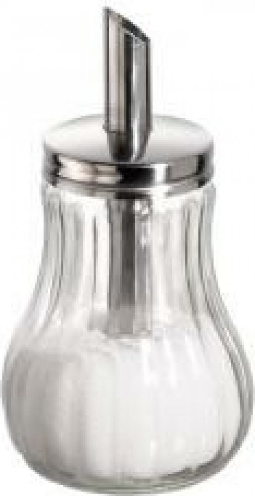 Skleněný dávkovač cukru s víčkem a špičkou z nerezové oceli. Lze mýt v myčce nádobí.