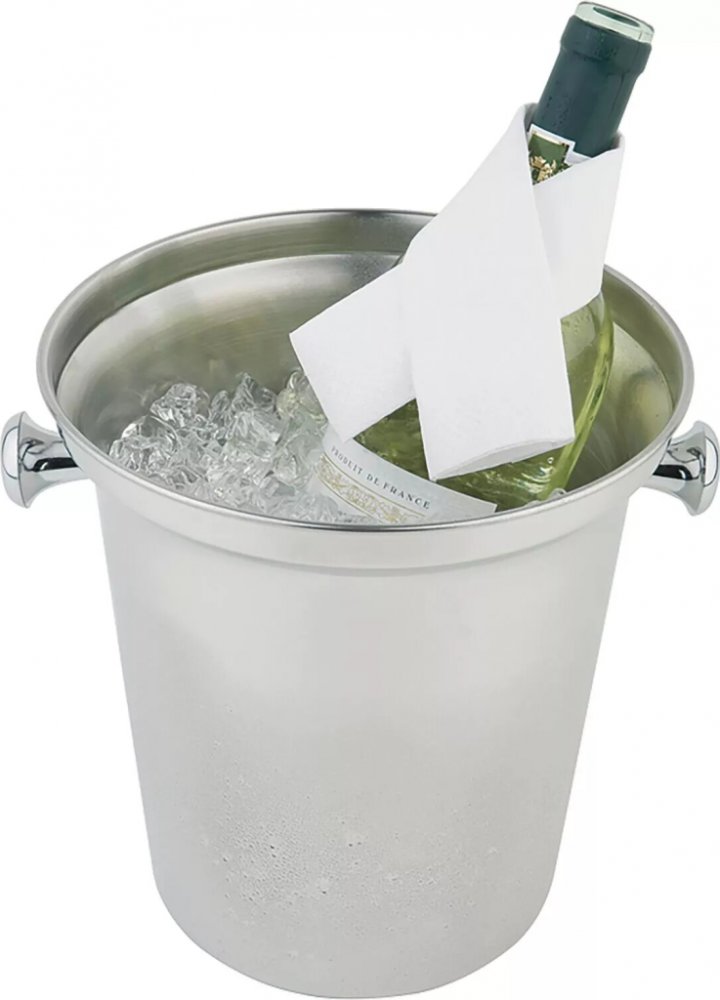 APS nerezová chladící nádoba na víno nebo sekt. Objem 4 l, výška 220 mm, průměr 210 mm. Uvnitř matná, vně lesklá. S masivními knoflíkovými úchyty a extra stabilním ohnutým okrajem. Těžké provedení. Ideální pro udržení chlazeného vína a sektu.