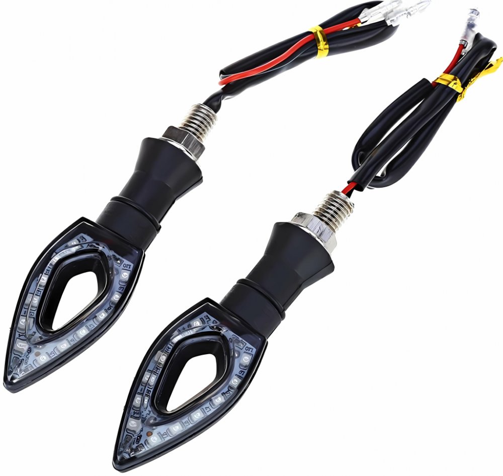 Tyto blinkry jsou díky supersvítivým LED diodám dobře vidět. Na rozdíl od žárovkových blinkrů mají LED blinkry zanedbatelnou spotřebu elektrické energie a již nikdy nebudete muset měnit prasklou žárovku. Tyto LED blinkry mají standardní uchycení, takže pasují na každou motorku.
