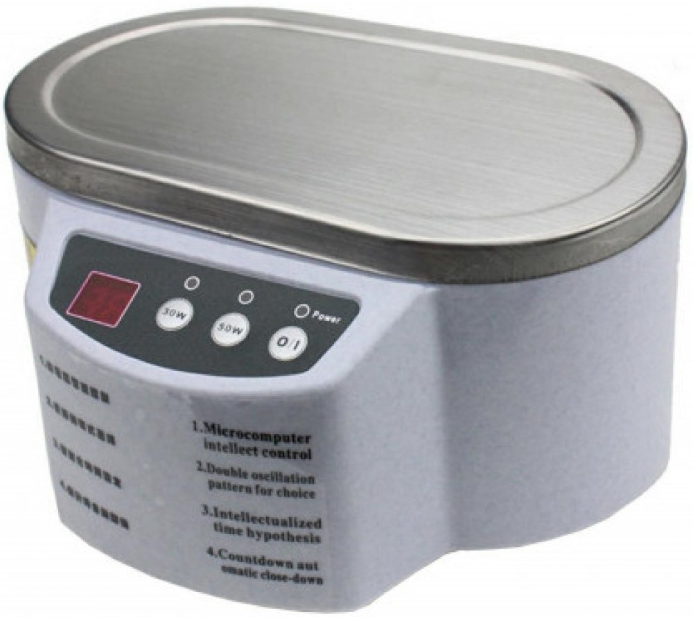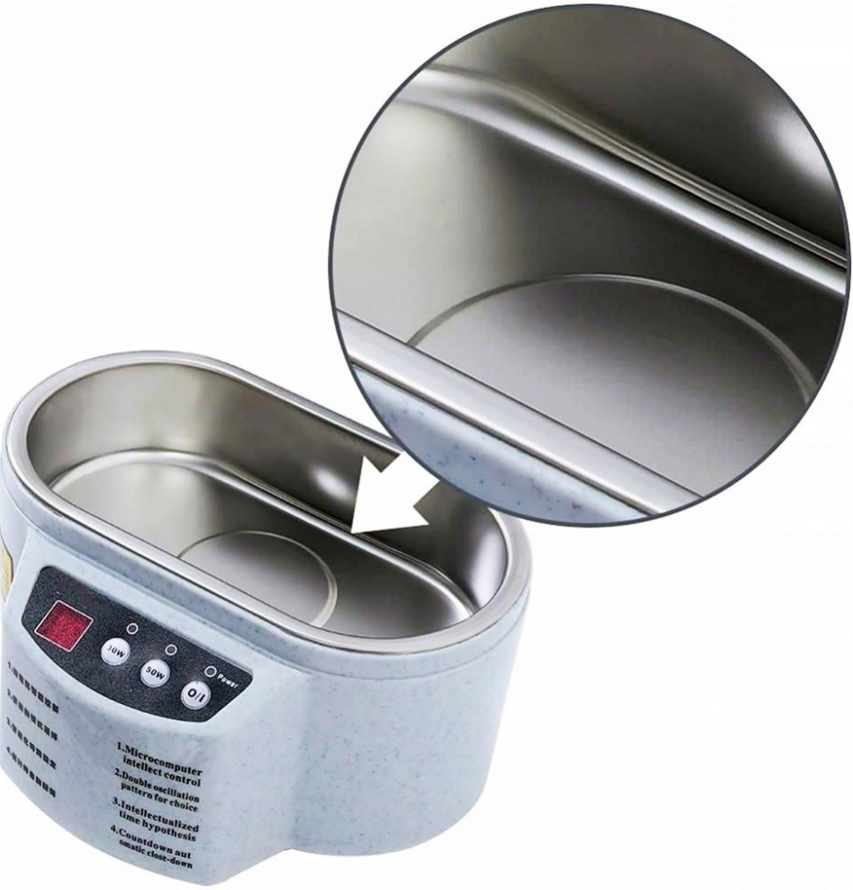 SPECIFIKACE: - Materiál: kov a plast- Napájení: 110 / 220V (ze sítě)- Výkon: 30 / 50W (dva provozní režimy - dva ultrazvukové výkony)- Frekvence zvukové vlny: 40 kHz- Časovač: 1 až 60 minut (každou 1 minutu)- Elektronický ovládací panel- Kapacita komory: 600 ml- Rozměry komory: 16,5 cm x 8,5 cm x 4,5 cm- Vnější rozměry: 18,5 cm x 15 cm x 10 cm- Barva pouzdra: šedá