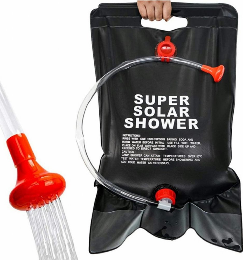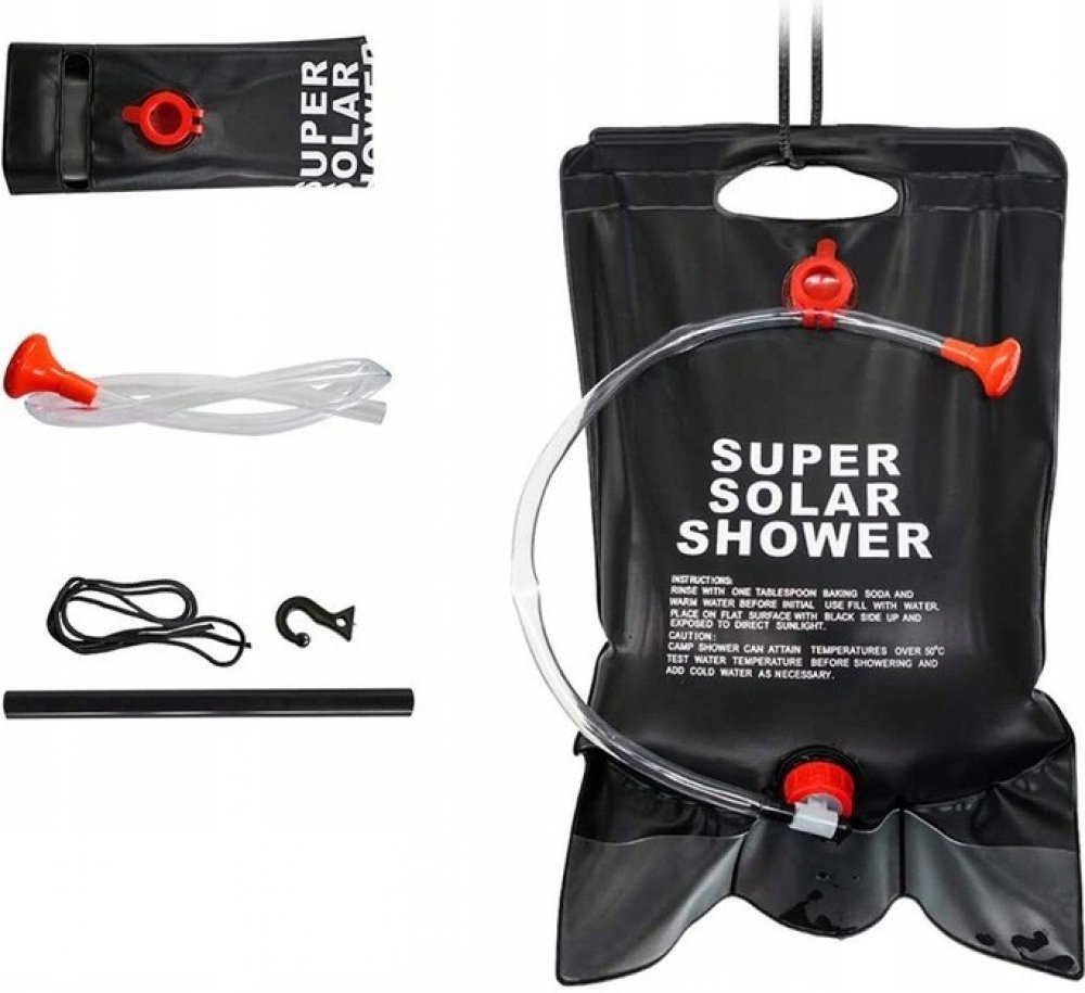 Závěsná kempingová sprcha je ideální pro každé kempování, výlet a přidělování. Nenahraditelný všude tam, kde je nemožné použít tekoucí vodu. Funkce produktu: Zcela nový, vysoce kvalitní produkt. Praktická kempingová sprcha pro použití v turistice, kempování, na delší výlety, kempování, turistické kempy nebo na pozemku. Bude se hodit všude tam, kde neteče voda. Užitečné při koupání a nezbytné v kempingové kuchyni, např. při mytí nádobí. Je velmi prostorná a nastavitelný průtok vody usnadní pohodlnou koupel. Kompaktní a snadno použitelný. Když je prázdný, zabírá málo místa. Vejde se do každého batohu. Voda ve sprše je ohřívána sluneční energií – po několika hodinách může dosáhnout teploty až 48 stupňů C. Šroubovací uzávěr pro snadné plnění. Vybaveno hadicí s kohoutkem pro regulaci průtoku vody a sprchovou tryskou. Balení: fólie Specifikace: Hmotnost: asi 400 g Kapacita: 20 litrů Délka sprchové trubky: 70 cm Rozměry (ploché): 39 cm x 60 cm Barva: Černá