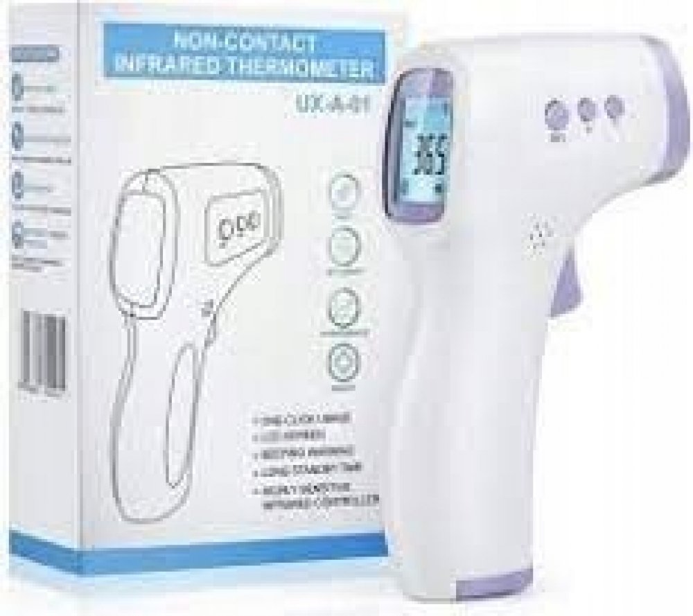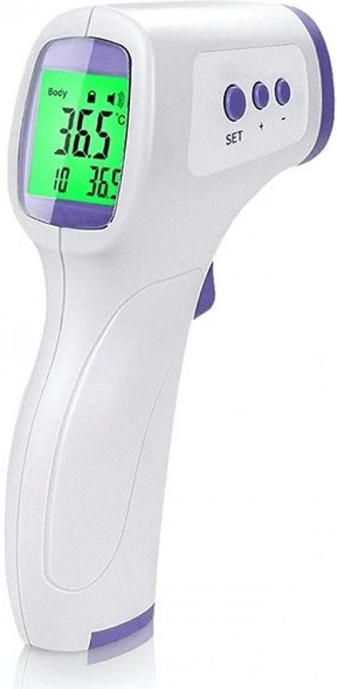 Bezkontaktní teploměr - k měření tělesné teploty a okolní teploty, teplota je měřena na čele a na spánku, s teplotním rozsahem od 32 do 42,9 °C, měřicí odchylka ± 0,1 °C, rychlost měření 3 s, displej, automatické vypnutí a možnost přepnutí °C a °F, napájení na 2 AAA baterie, hmotnost 123 g, bílá barva, rozměry 15 × 8 cm (V׊)