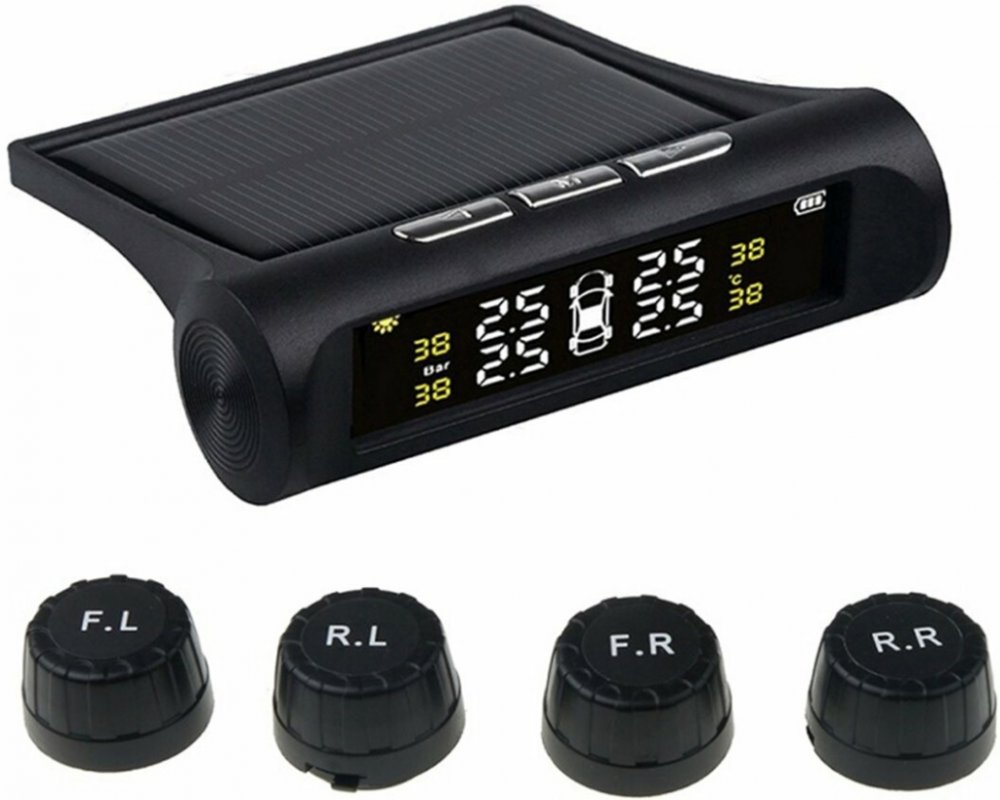 Sada snímačů tlaku a teploty v pneumatikách TPMS. Umožňuje průběžné sledování u konkrétní pneumatiky. Snadná instalace a napájení čidel ze solárního panelu. Sada senzorů odesílá informace na ovládací panel do 3 sekund od prudké změny tlaku nebo teploty (nebo do 3 minut s postupnými výkyvy). Snadno čitelný LCD displej umožňuje snadno zobrazit naměřené hodnoty. V případě nedostatečného osvětlení lze snímač napájet kabelem micro-USB.Při nízkém tlaku a vysokých teplotách vás přístroj upozorní na problém. Materiál: plast Napájení (ovládací panel): solární / micro-USB Napájení (snímače pneumatik): 1x baterie CR1632 (pro každý snímač) Frekvence (signál ze senzorů): FSK 433,92 MHz Jasný LCD displej Bezdrátové senzory pro měření tlaku a teploty Rozsah měření tlaku: 0 - 3,5 BAR Měření tlaku také v PSI Doba odezvy: 3 sekundy (s rychlými změnami na displeji) Pracovní teplota: od - 20 do 85 stupňů Celsia Vlhkost: až 100% Rozměry (ovládací panel): 9,5 cm x 7,5 cm x 8,5 cm Černá barvaObsah balení:1 x Kontrola4 x Externí senzor1 x Klíč4 x Šroub