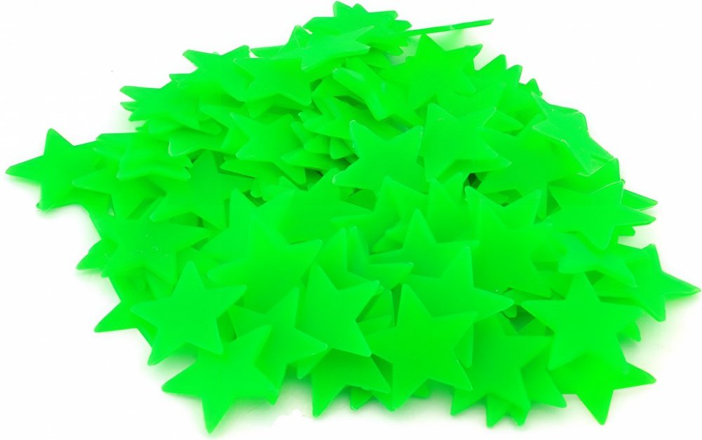 Hledáte dekoraci do dětského pokoje? Máme tu pro vás sadu 100 fluorescenčních hvězd. Hvězdy pohlcují světlo a tak září ve tmě, aniž by narušovaly spánek vašeho dítěte. Díky snadné a jednoduché instalaci za pomoci oboustranných samolepek jsou vhodné na jakýkoli povrch.Technická specifikace:100 ks fluorescenčních hvězdzáří ve tmě díky absorbovanému světlusnadná instalace (oboustranné samolepky)materiál: plastrozměry: 2,5 cm x 3,2 cm x 0,1 cmbarva: zelená Sada 100 fluorescenčních hvězd. Hvězdy pohlcují světlo a tak září ve tmě. Skvěle se hodí k dekoraci dětského pokoje (např. na strop). Snadná instalace na jakýkoli povrch díky použití oboustranných nálepek.Vlastnosti a specifikace produktu:Sada 100 fluorescenčních hvězd.Svítí ve tmě dříve absorbovaným světlem.Snadná instalace (oboustranné samolepky).Materiál: plast Svítí ve tmě Snadná instalace (nálepky)Rozměry: 2,5 cm x 3,2 cm x 0,1 cmBarva: zelená Svítící hvězdy jsou perfektním doplňkem na zeď do dětského pokoje. Umožní dětem klidné usínání a symbolizují skutečnou oblohu. Hvězdy se upevňují pomocí samolepicí pásky. Hvězdy stačí nasvítit a svítí. Specifikace: Materiál: plast Září ve tmě Snadná montáž (samolepky) Rozměry: 2,5 cm x 3,2 cm x 0,1 cm Zelená barva