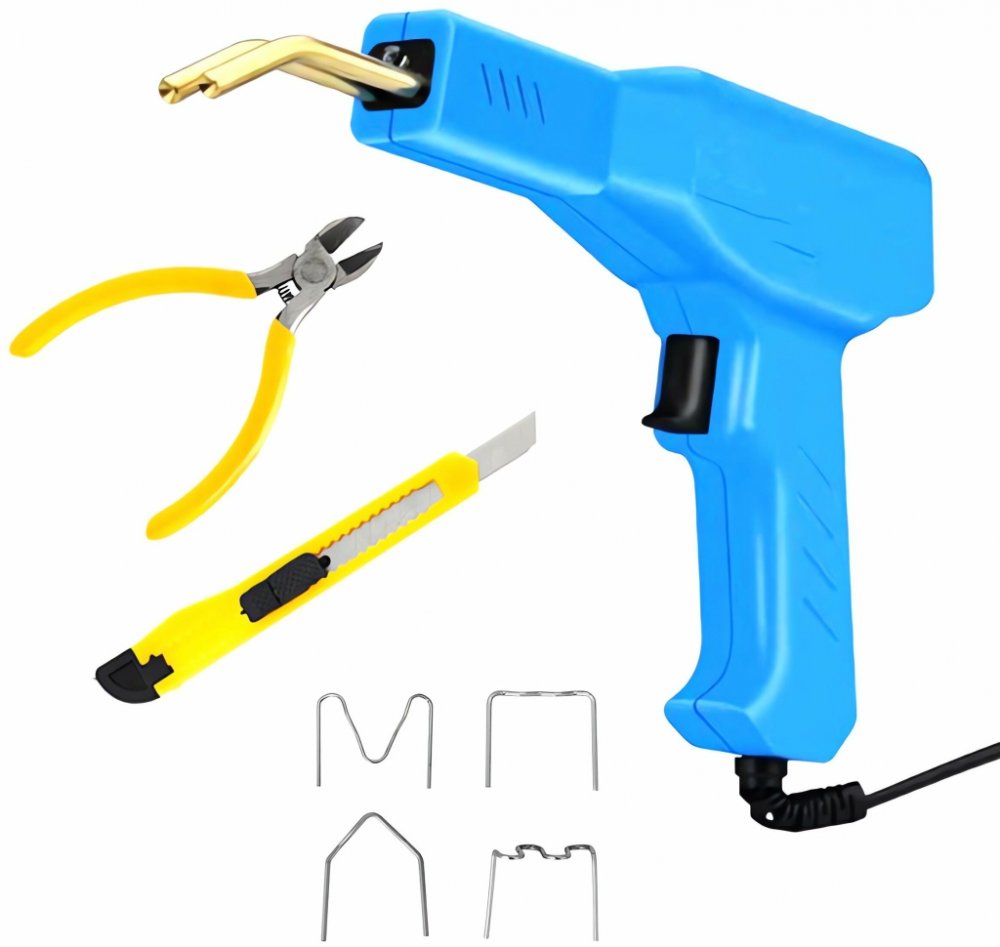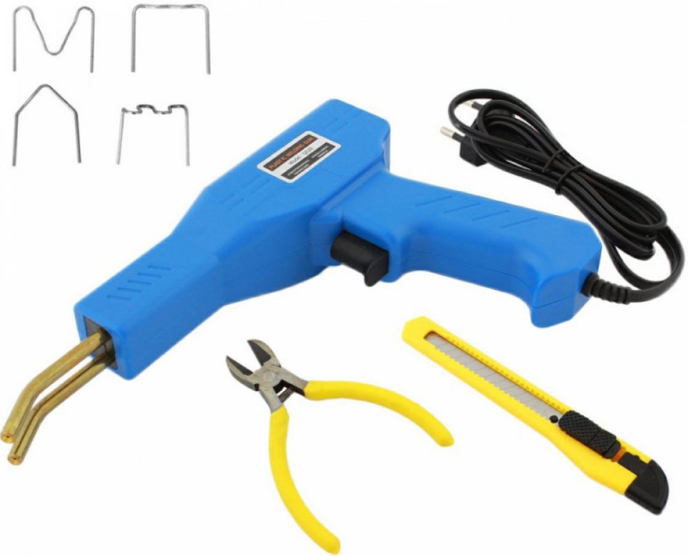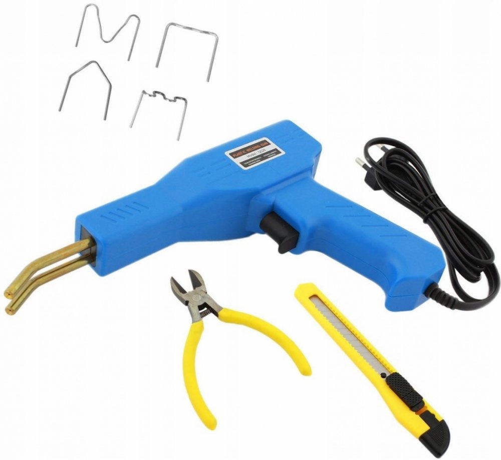 Kompaktná zvaračka plastov so sponami v plastovom kufríku Kompaktná zváračka plastov. Sada obsahuje 200 oceľových sponiek na plast (4 druhy po 50 kusov) a tiež nôž a kliešte na lisovanie plastov. Vynikajúca sada na opravu plastových dielov, zváranie plastov a maskovanie prípadných prasklín. Súčasťou súpravy je aj pohodlné puzdro, ktoré uľahčí prenášanie a skladovanie všetkých prvkov. Vlastnosti a špecifikácia produktu: sada 200 sponiek pre zváračky plastov a zváračky robustné plastové lisovacie kliešte a rezačka 50 sponiek "malej vlny" 50 sponiek "veľkej vlny" 50 sponiek typu "vonkajší uhol" 50 svoriek "vnútorný uhol" materiál: nerez + kov napájanie: 230V (zo siete) výstupný prúd: 0-15A rozmery (zváračka): 22,5 cm x 15,3 cm modrá farba#obr8Obsah balenia: Kompaktná zvaračka plastov so sponami