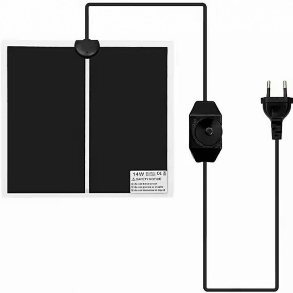 Kompaktní topná podložka určená do terárií. Jeho malé rozměry a vysoká účinnost zajišťují rovnoměrné vyhřívání celého terária nebo jeho částí (v závislosti na velikosti). Podložka je odolná vůči vysokým teplotám. Je také vybavena jednoduchým regulátorem topného výkonu. Vlastnosti produktu: Kompaktní topná rohož do terárií. Vybaveno regulátorem topné síly. Malé rozměry a vysoká účinnost. Rovnoměrně vyhřívá celé terárium nebo jeho část. Odolné vůči vysokým teplotám.< /li> Specifikace: Materiál: PP plast Napájení: 230V (ze sítě) Výkon: 14 W Životnost: až 30 000 hodin Infračervené (IR) vlnová délka: 8-15µm Délka: 28 cm Šířka: 28 cm Barva: černá strong> Dlouhý napájecí kabel Balení: fólie Prosím, objednejte si wenia!