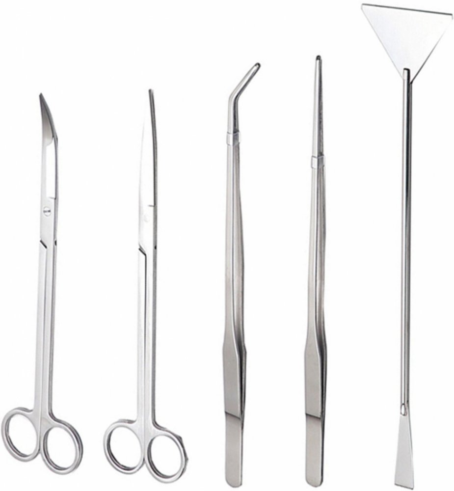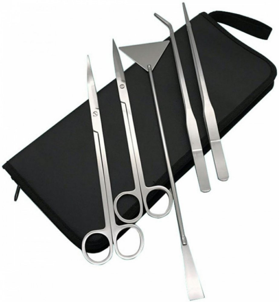 Sada pinzet, nůžek a oboustranné špachtle pro údržbu rostlinného akvária. Skvělý dárek pro každého rostlinného akvaristu.