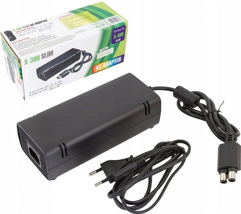 Napájecí adaptér pro konzoli Microsoft XBOX 360 model SLIM.Zařízení umožňuje připojit herní konzoli XBOX 360 k elektrické síti 230 V.Napájecí adaptér je náhradní, ale dokonale vyhovuje všem modelům konzole XBOX 360 v obnovené verzi SLIM. Je vybaven přídavnými pěnovými nožičkami, kteréózabraňují poškrábání podlahy. Zařízení je rovněž vybaveno kontrolkou. Napájecí kabel je dobře izolovaný a filtrova...