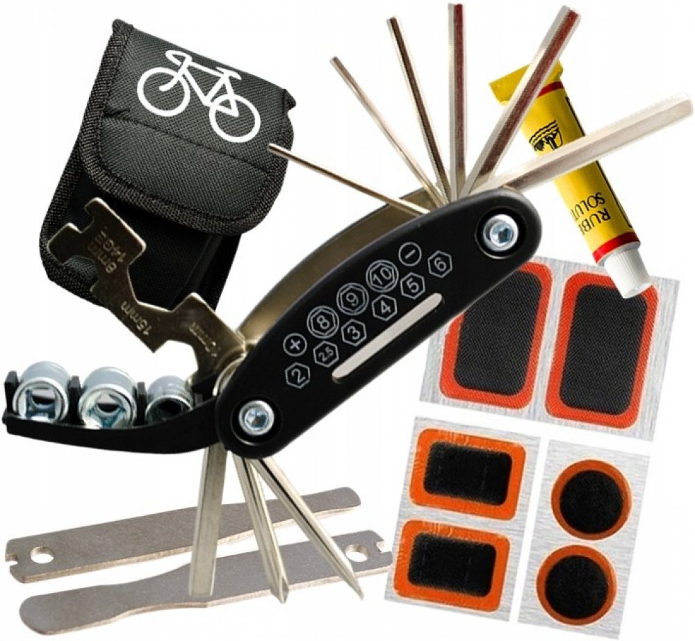 Sada klíčů na opravu jízdního kola 16v1 obsahuje vše, co potřebujete k rychlé opravě. Každý cyklista by měl mít po ruce tuto univerzální sadu klíčů.