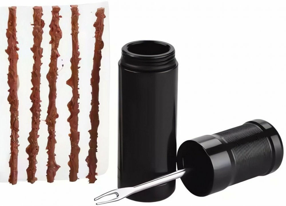 Sada na rychlou opravu bezdušových pneumatik bez nutnosti demontáže pláště z disku. Tato sada je vhodná jak pro automobily, tak pro motocykly, čtyřkolky a další bezdušové pneumatiky.Návod k použití: 1. Najděte místo, kde je pneumatika propíchnutá a odstraňte předmět, který způsobil porušení (pokud je ještě v pneumatice). 2. Do otvoru zasuňte průtažník (šídlo / vrták), a následně ho protahujte směr...