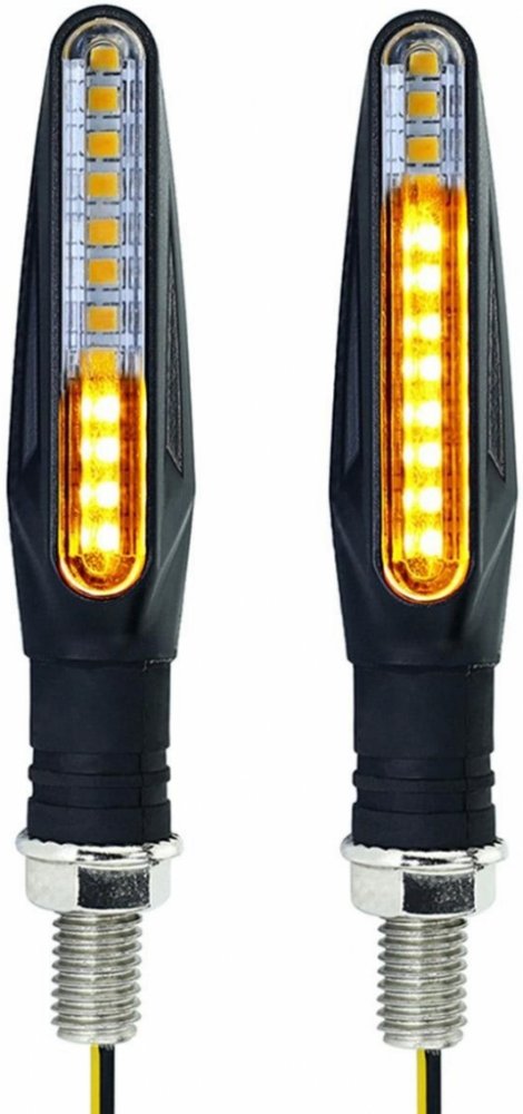 Univerzální LED ukazatele pro dvoukolky. Perfektní doplněk pro váš motocykl. LED diody dávají silné oranžové světlo – výrazně zlepšují viditelnost. Charakteristický, dynamický přechod LED během manévru umocňuje estetický dojem. Pasují na všechny motocykly se standardním závitem M10.