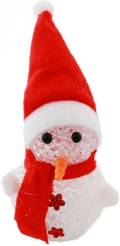Sněhulák s kloboukem zářícím LED světlem měnící barvy. Skvělá dekorace pro sváteční období. Nevyžaduje napájení ze sítě.